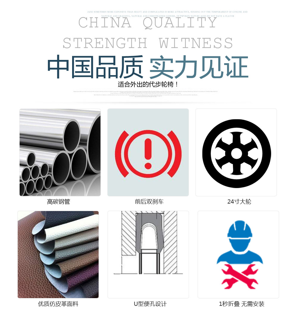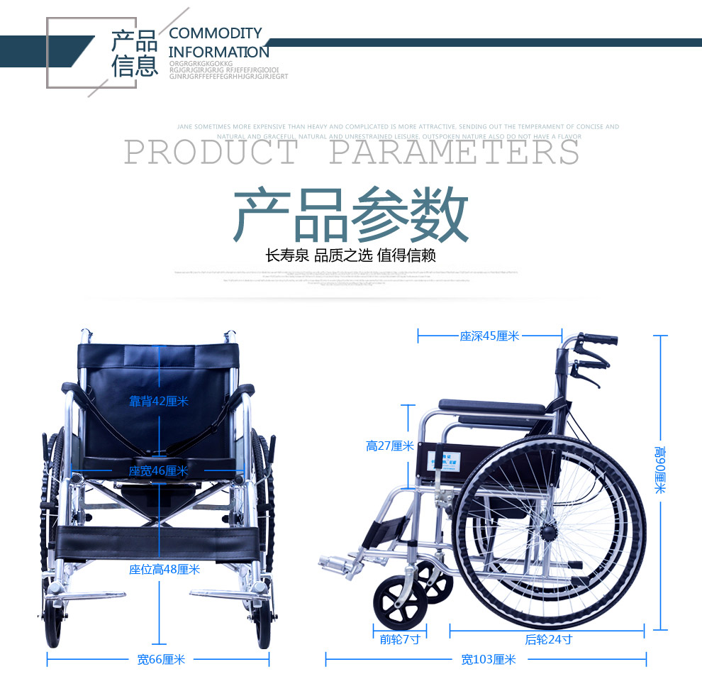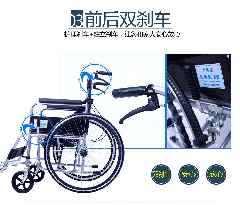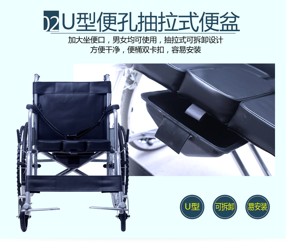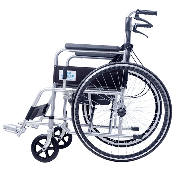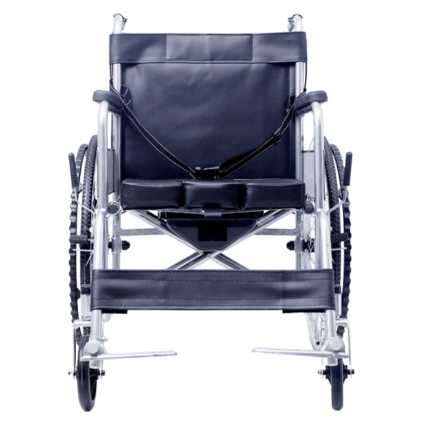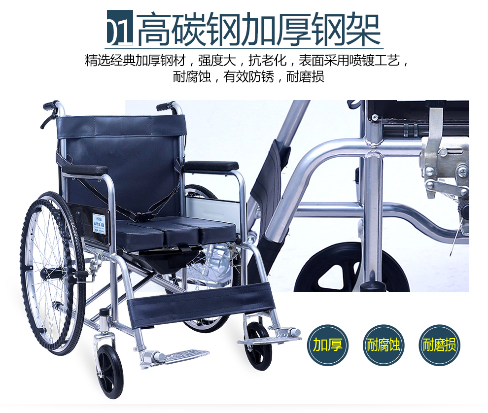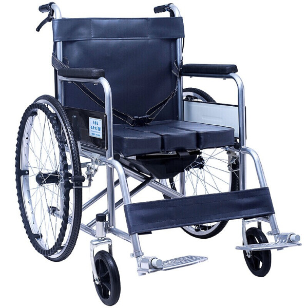 长寿泉轮椅 轻便折叠带坐便 皮革坐便款实心轮