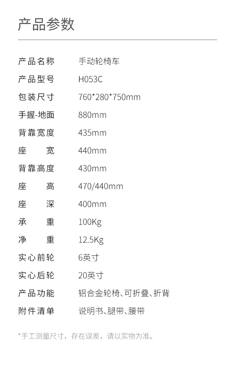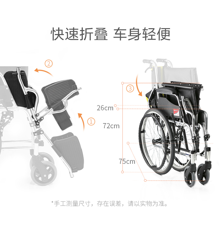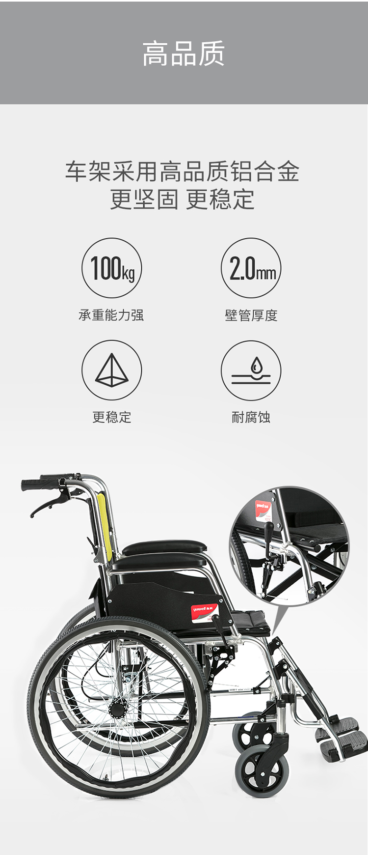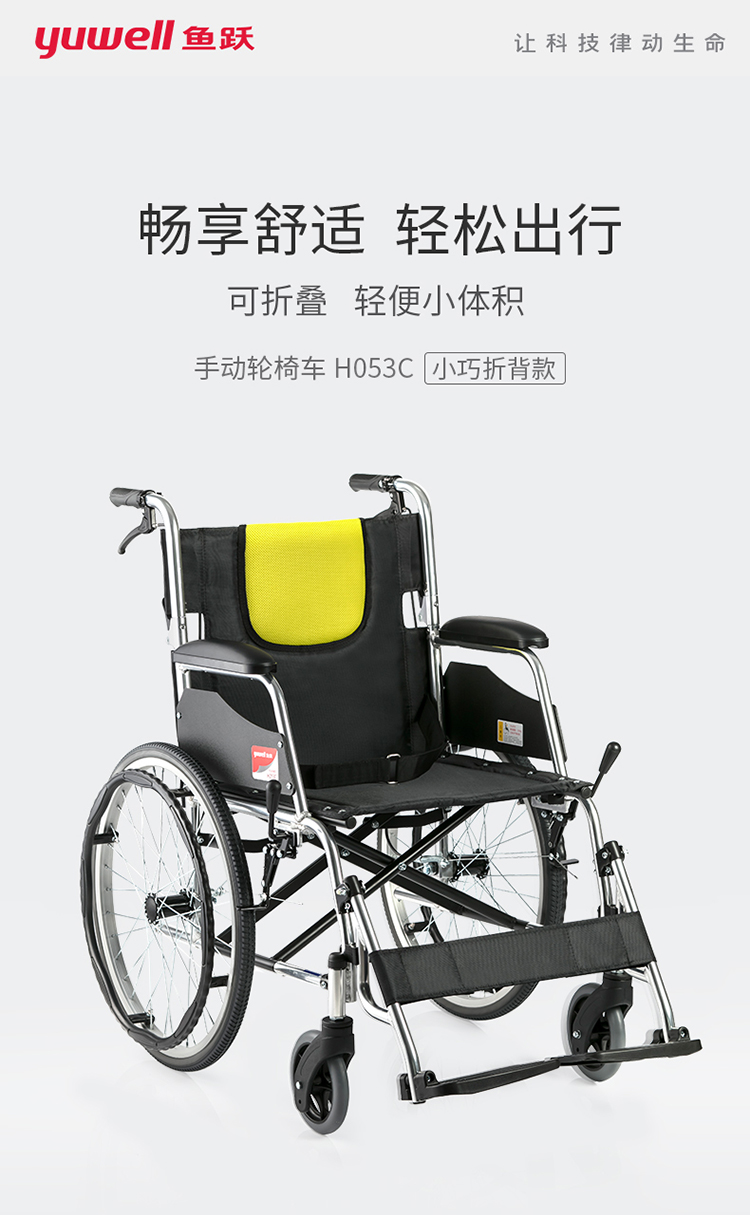 鱼跃 轮椅H053C 加强铝合金 折背便携
