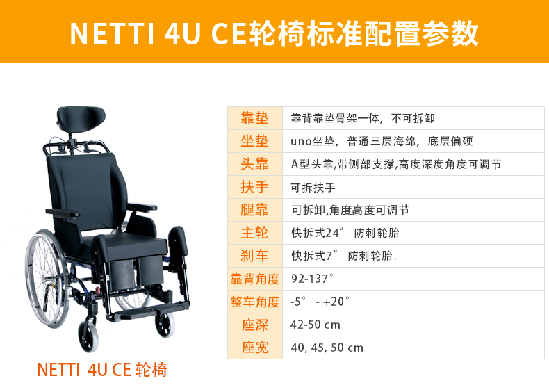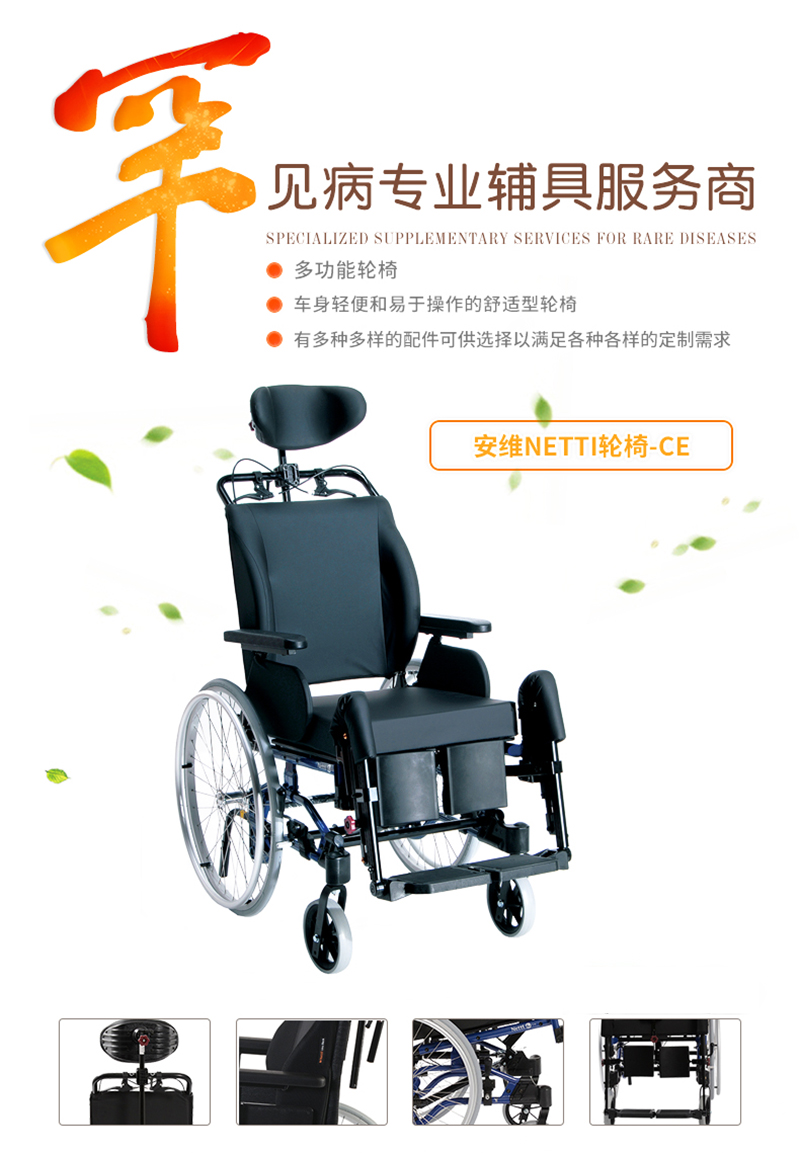 安维Netti 4U CE轮椅ALS/渐冻人护理专用轮椅高靠背可躺 定制轮椅 可久坐