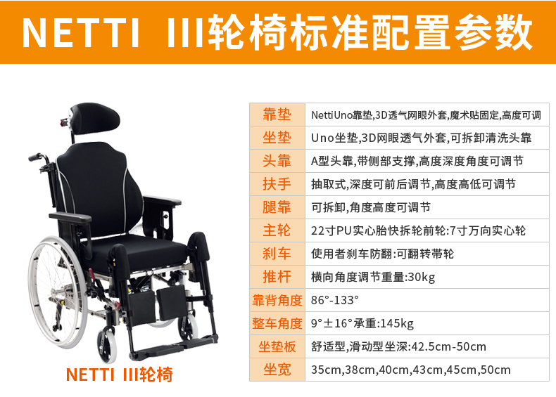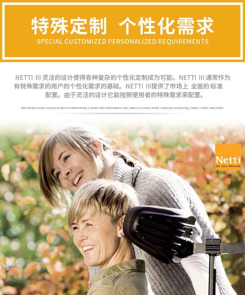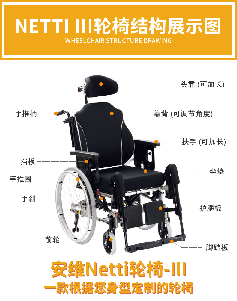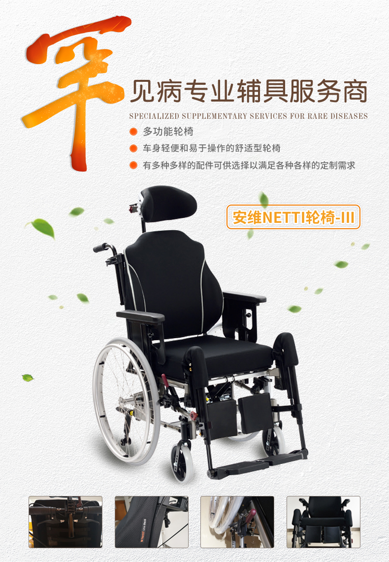安维Netti III轮椅ALS/渐冻人护理专用轮椅高靠背可躺定制轮椅