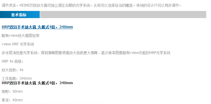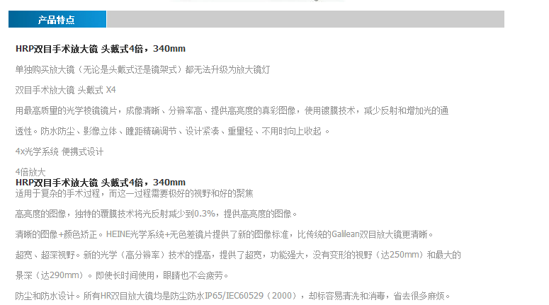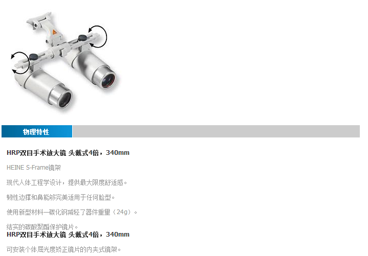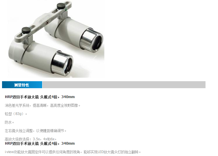 海涅HRP双目手术放大镜 头戴式4倍,340mm