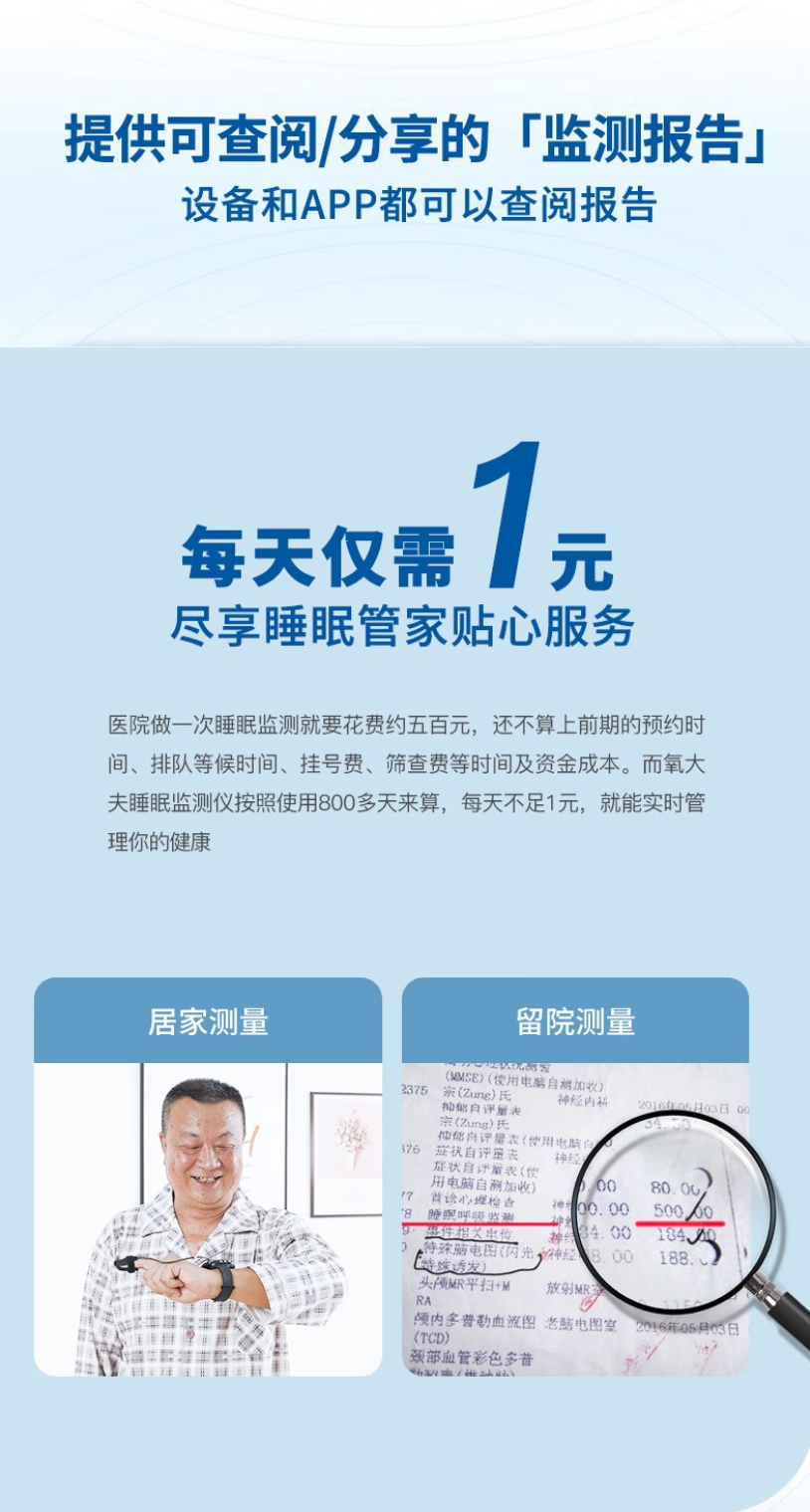 已经多次使用后才能评价反馈,数据有做过对比,跟医院的没差别,特别是睡眠呼吸暂停综合征的初筛结果跟医院的结果是一模一样的。