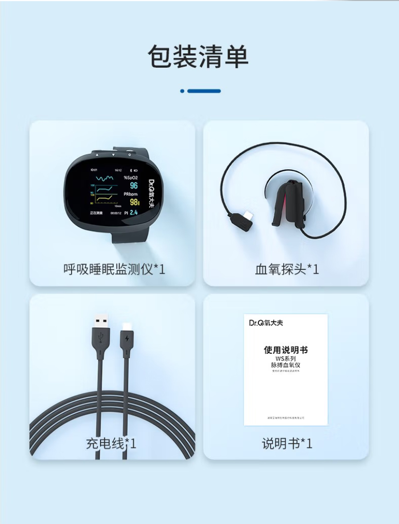 氧大夫 医用家庭智能睡眠监测仪 睡眠手表呼吸暂停监测仪WS20A