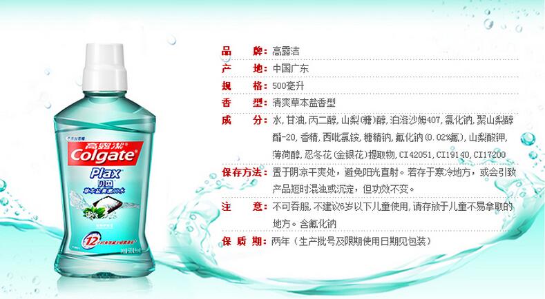 高露洁(Colgate) 贝齿草本盐爽 漱口水 500ml