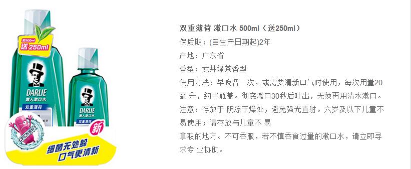 黑人(DARLIE)双重薄荷 漱口水 500ml(送250ml)