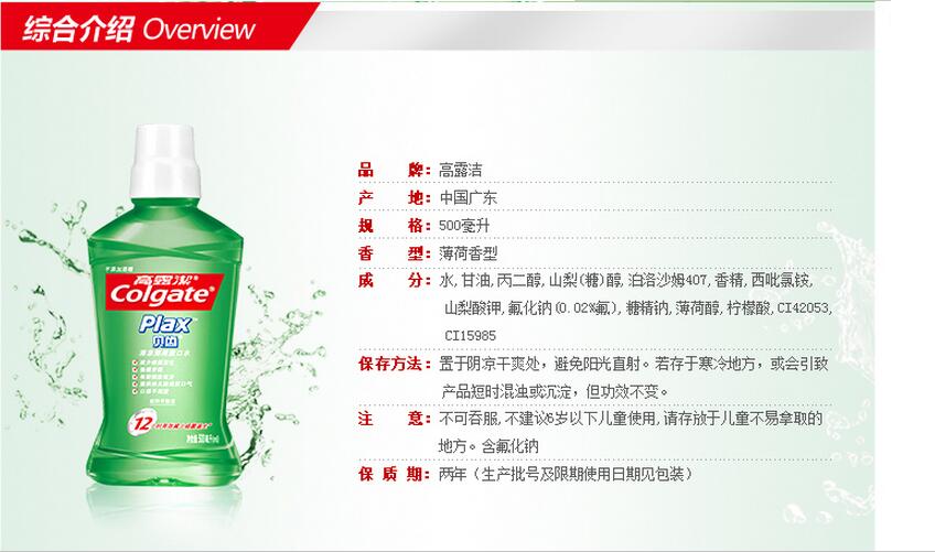 高露洁(Colgate) 贝齿抗菌漱口水 (清凉薄荷) 500ml