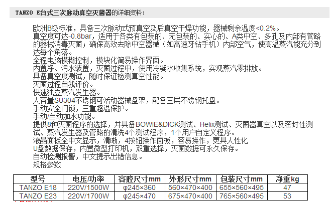 华南台式三次脉动真空灭菌器TANZO E