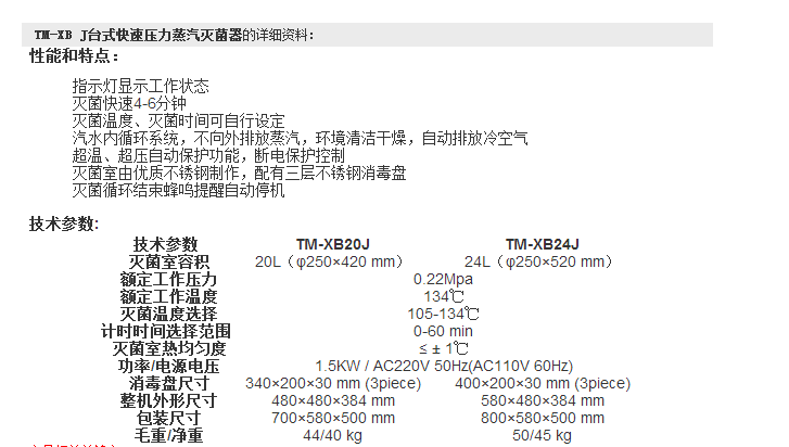 华南台式快速压力蒸汽灭菌器TM-XB J