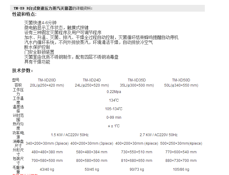 华南台式快速压力蒸汽灭菌器TM-XD D