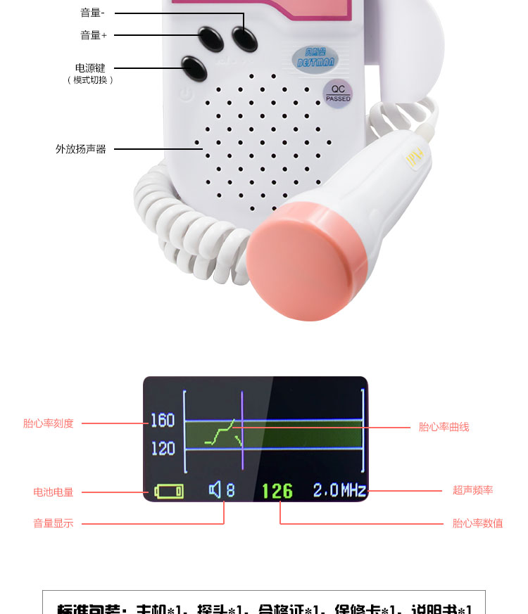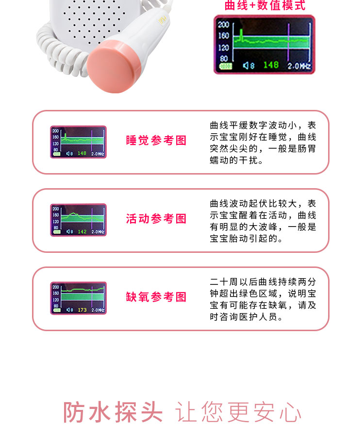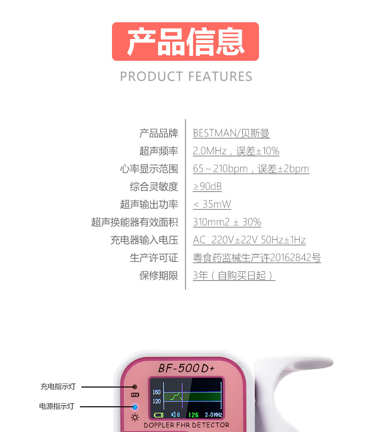 贝斯曼 多普勒胎心仪 曲线型BF-500D+ 可充电