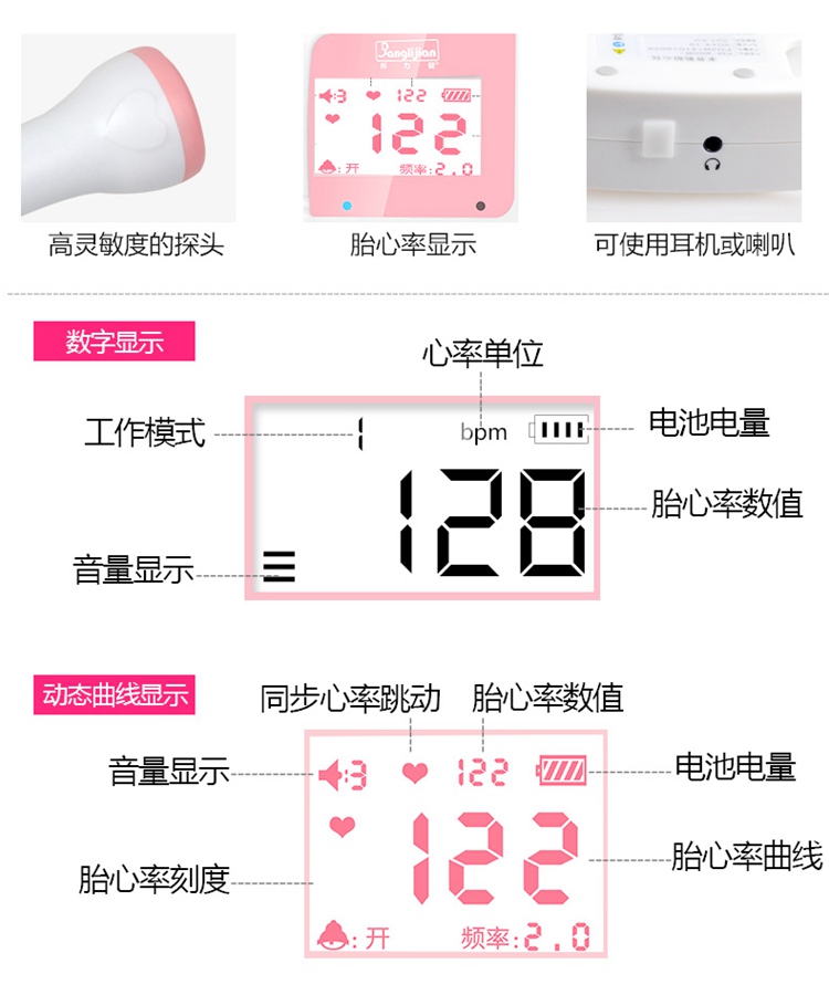 邦力健 多普勒胎心仪 数字曲线双显FD-200G+