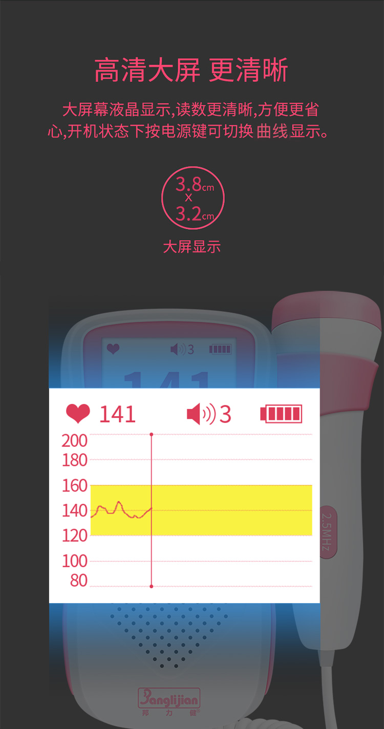 邦力健 多普勒胎心仪(充电款)数字曲线双显