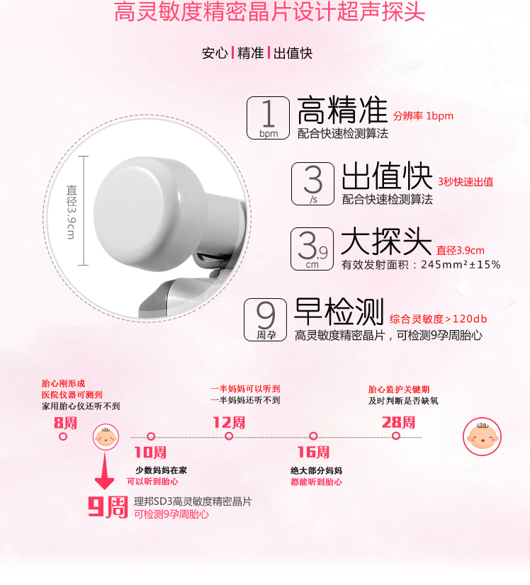 卫康明 多普勒胎心仪 曲数双显款(送耦合剂)