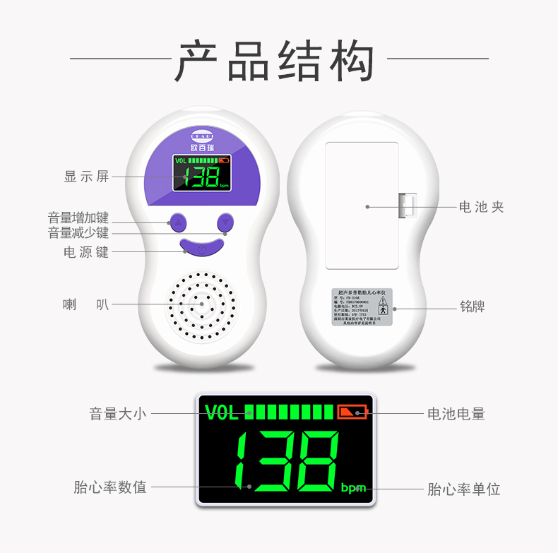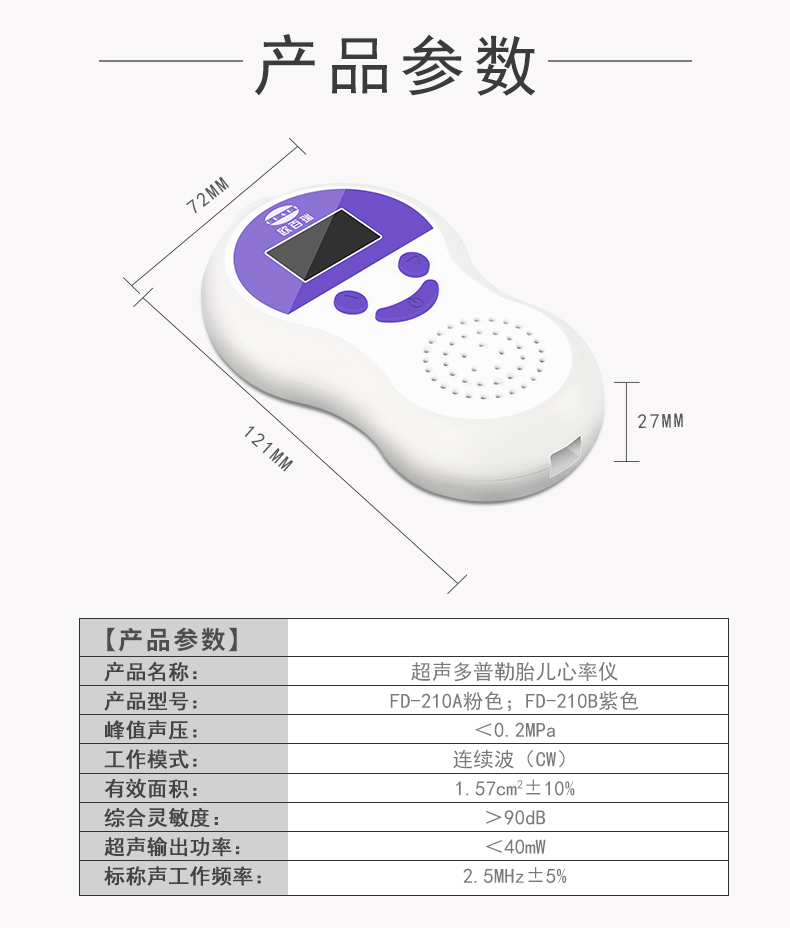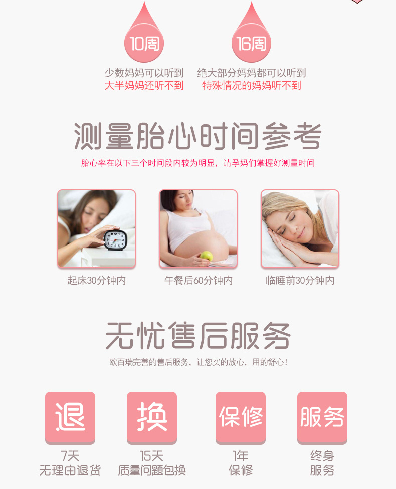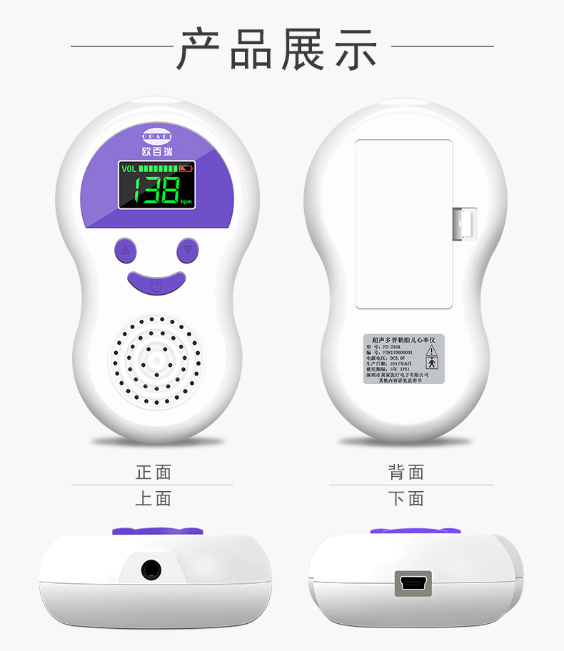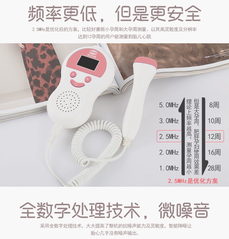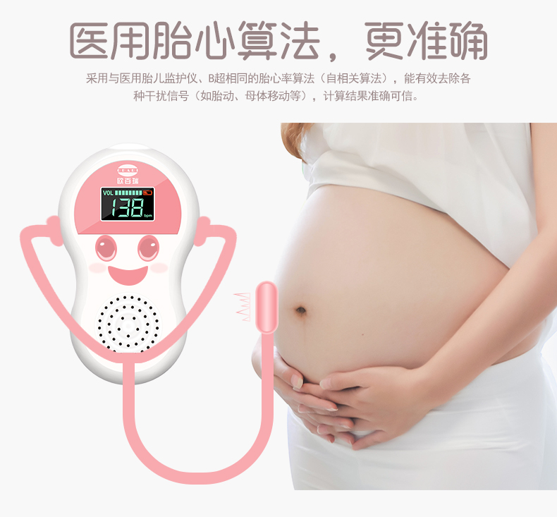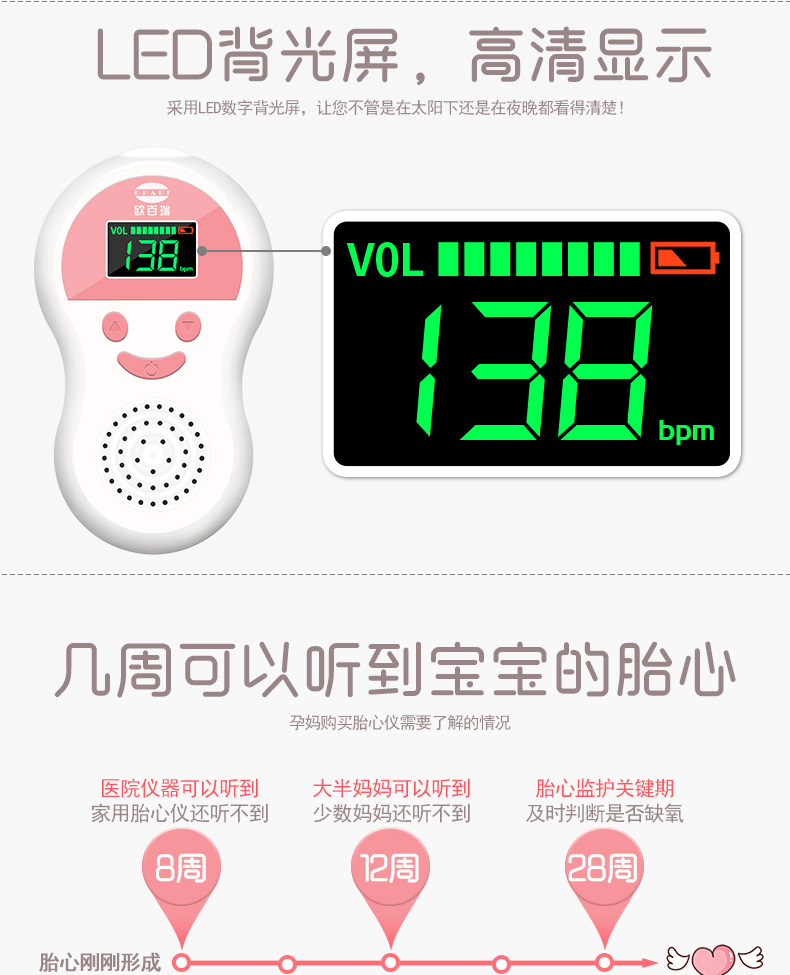欧百瑞 多普勒胎心仪(浪漫粉) 送2瓶耦合剂+孕周盘