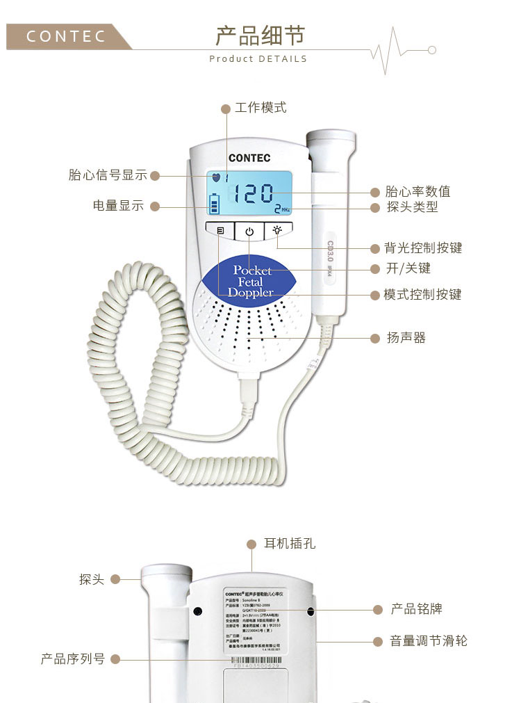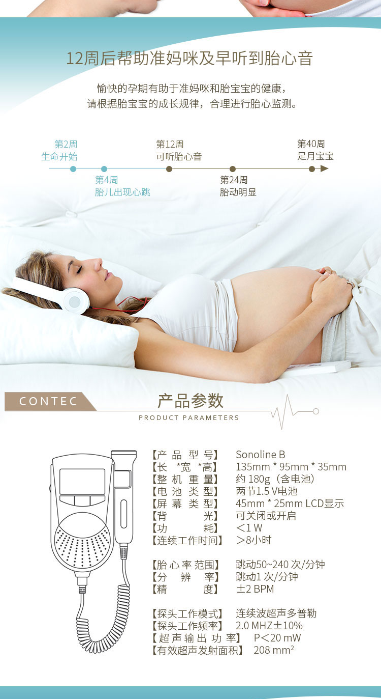 康泰 多普勒胎心仪 Sonoline B 2M探头