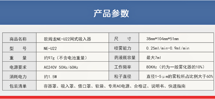 欧姆龙 便携手持式雾化器NE-U22(网式)