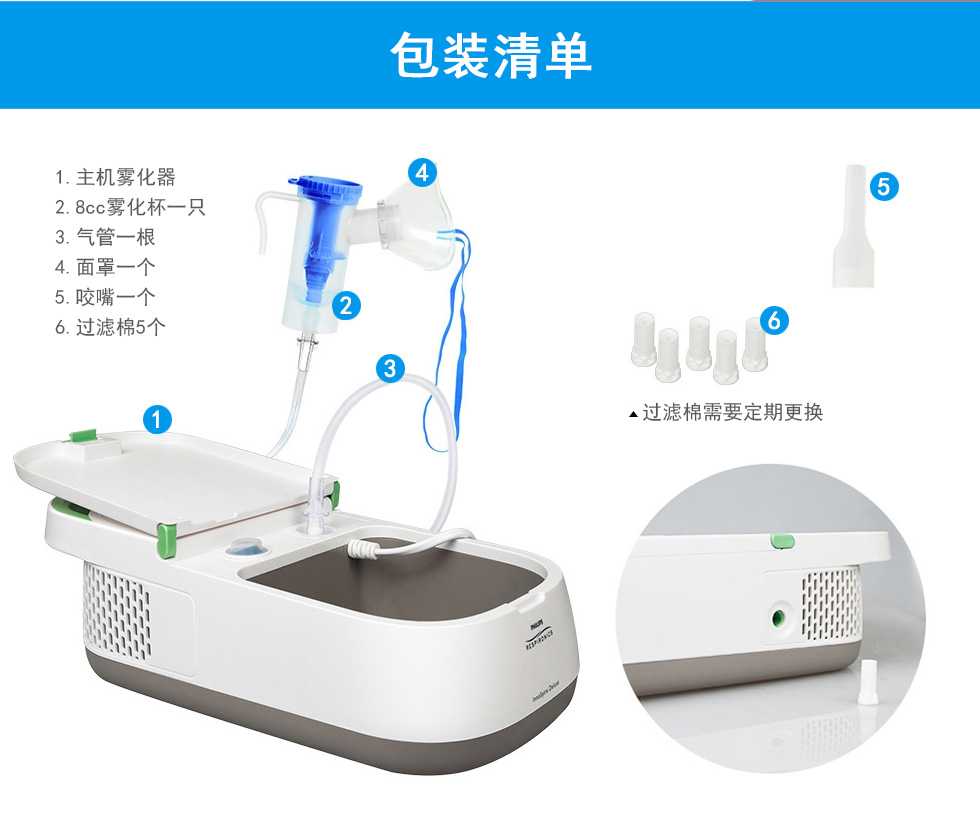 飞利浦雾化器Deluxe 医用家用成人儿童空气压缩雾化吸入器