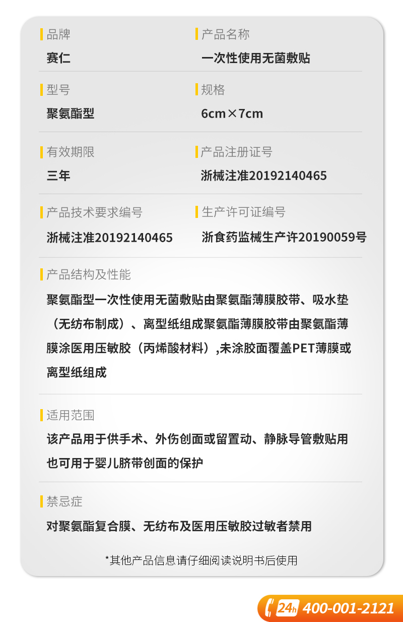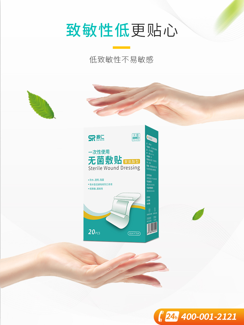 赛仁 一次性使用无菌敷贴 6*7cm*20片 术后伤口防水贴 创口贴