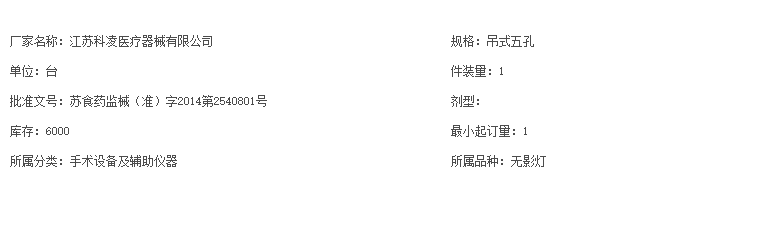 科凌吊式五孔无影灯