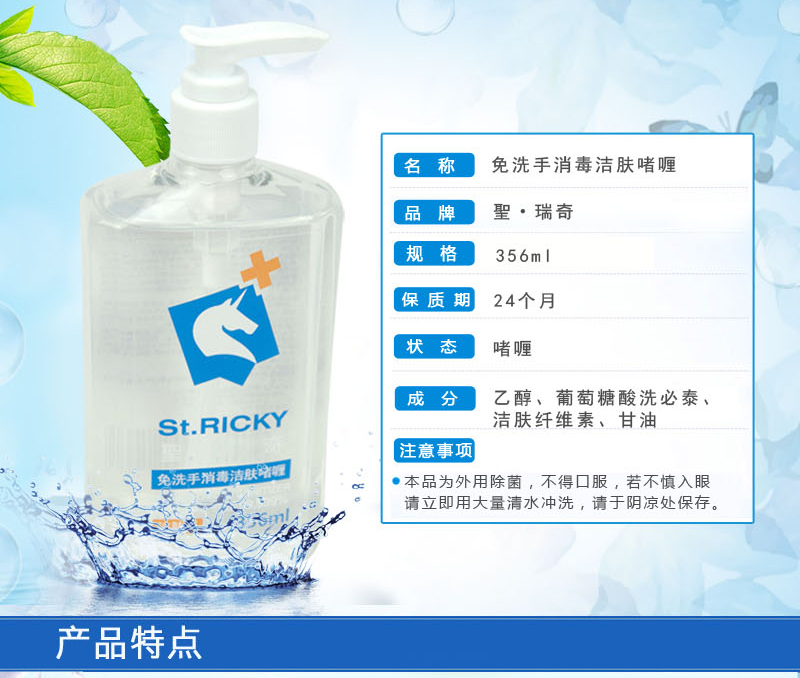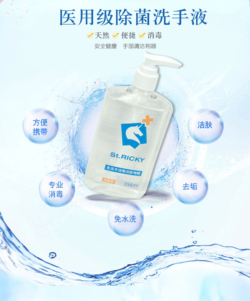 聖瑞奇(St.RICKY)免洗手液消毒洁肤啫喱356ml 医用级别 手部清洁 洁肤啫喱356ml