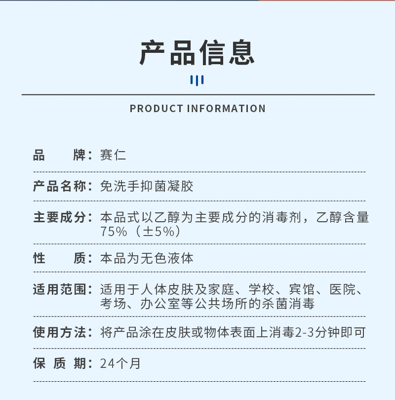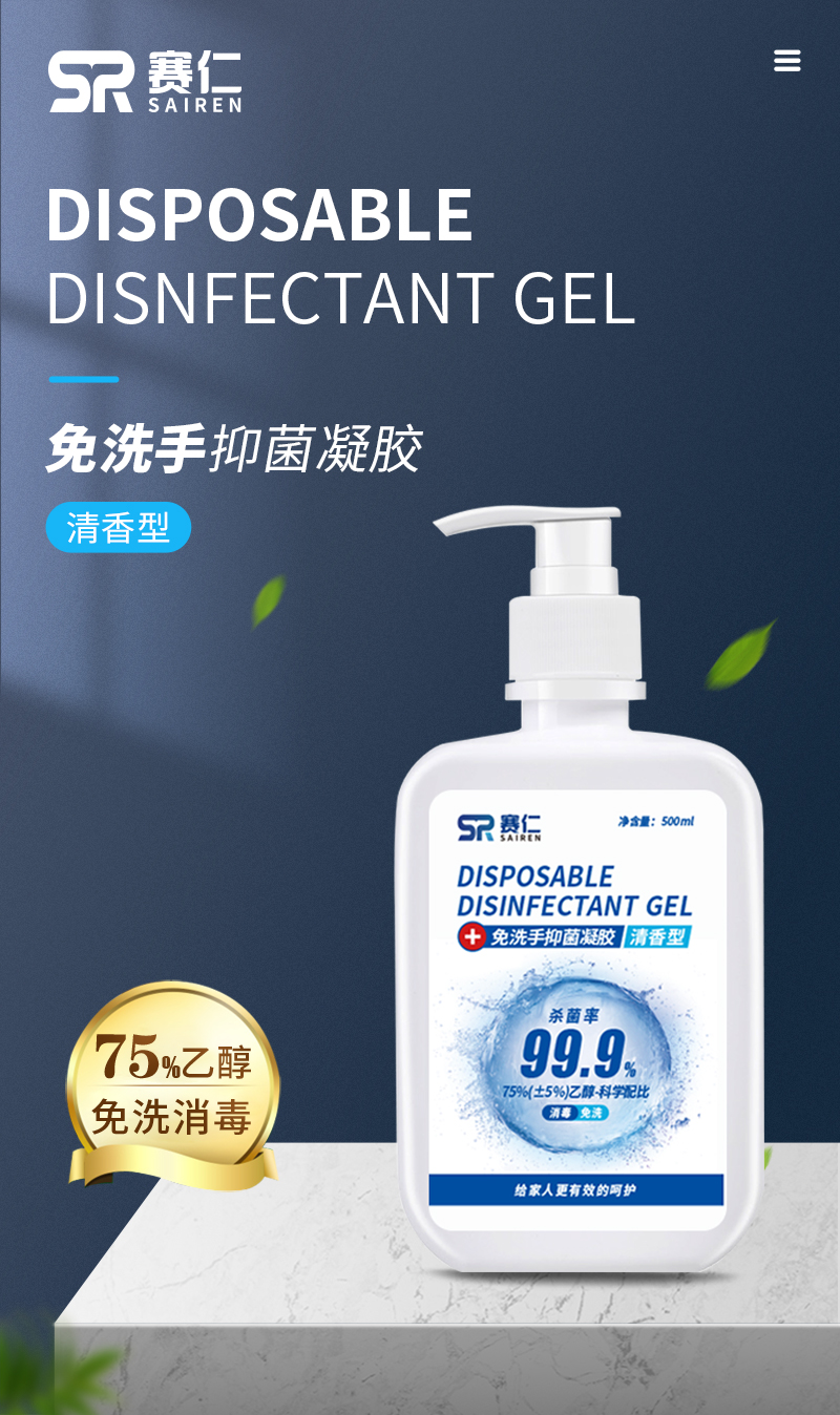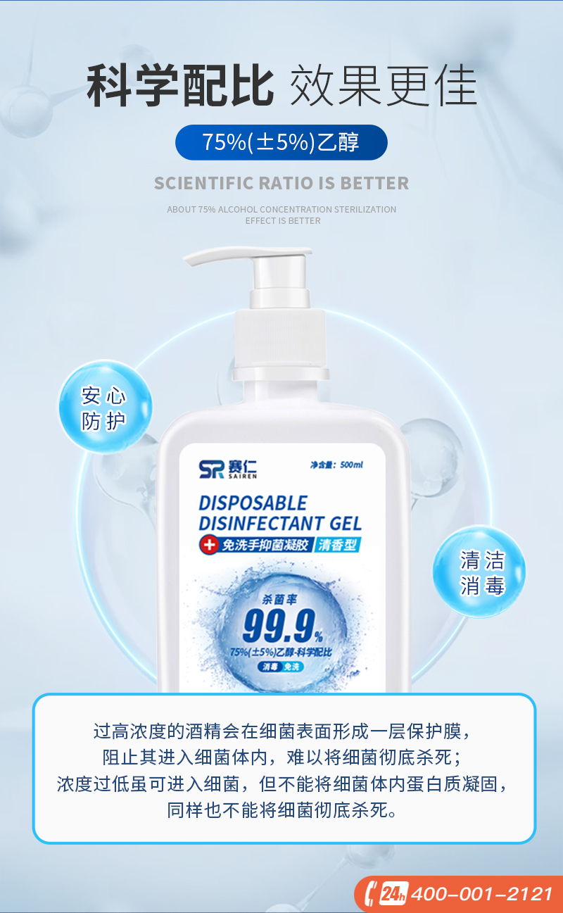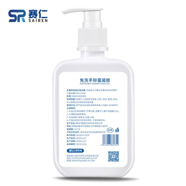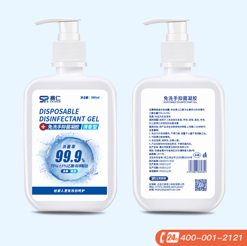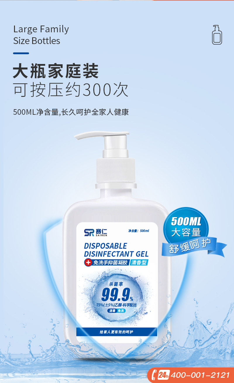 赛仁 免洗消毒凝胶洗手液 含75%医用酒精 500ml/瓶装