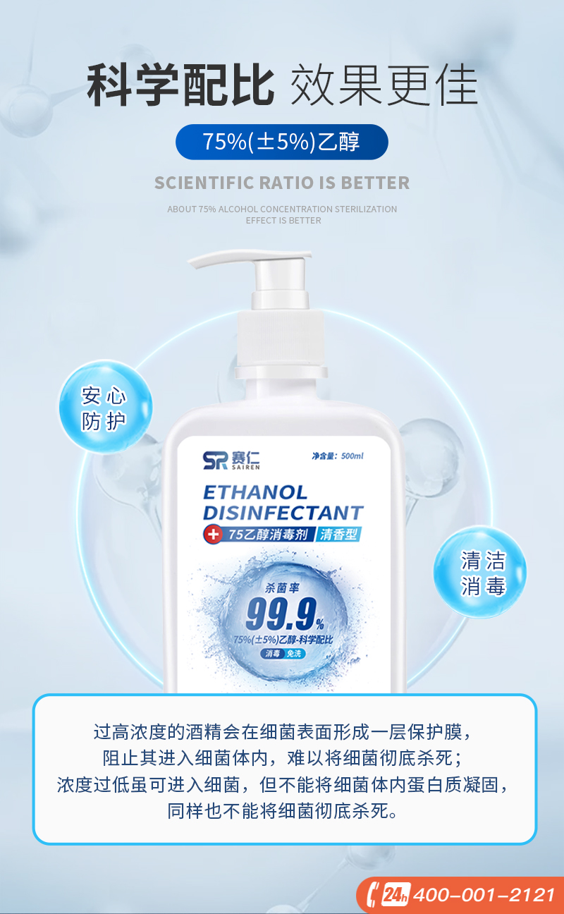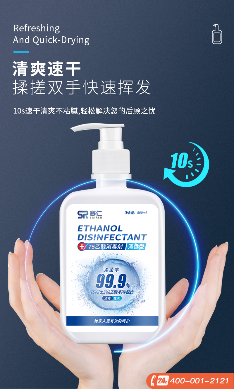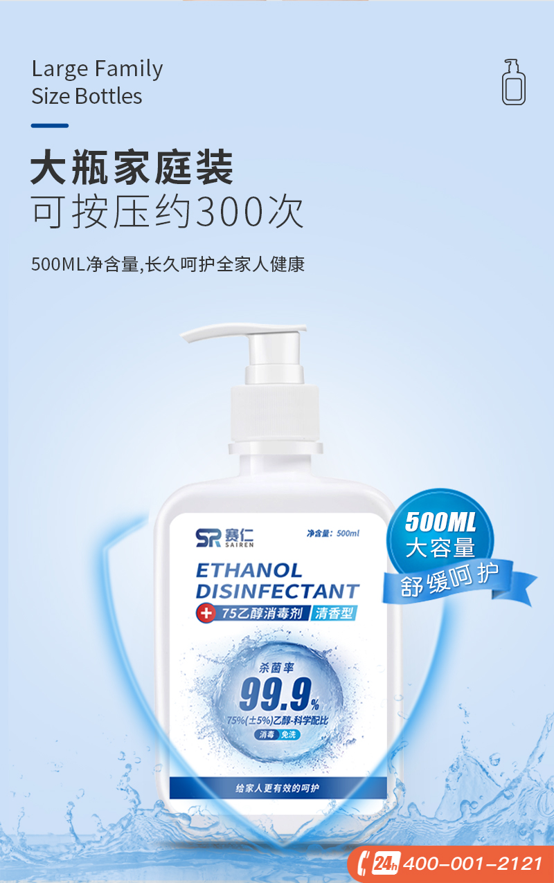 赛仁 免洗75%乙醇消毒剂 500ml/瓶装
