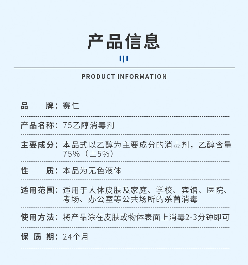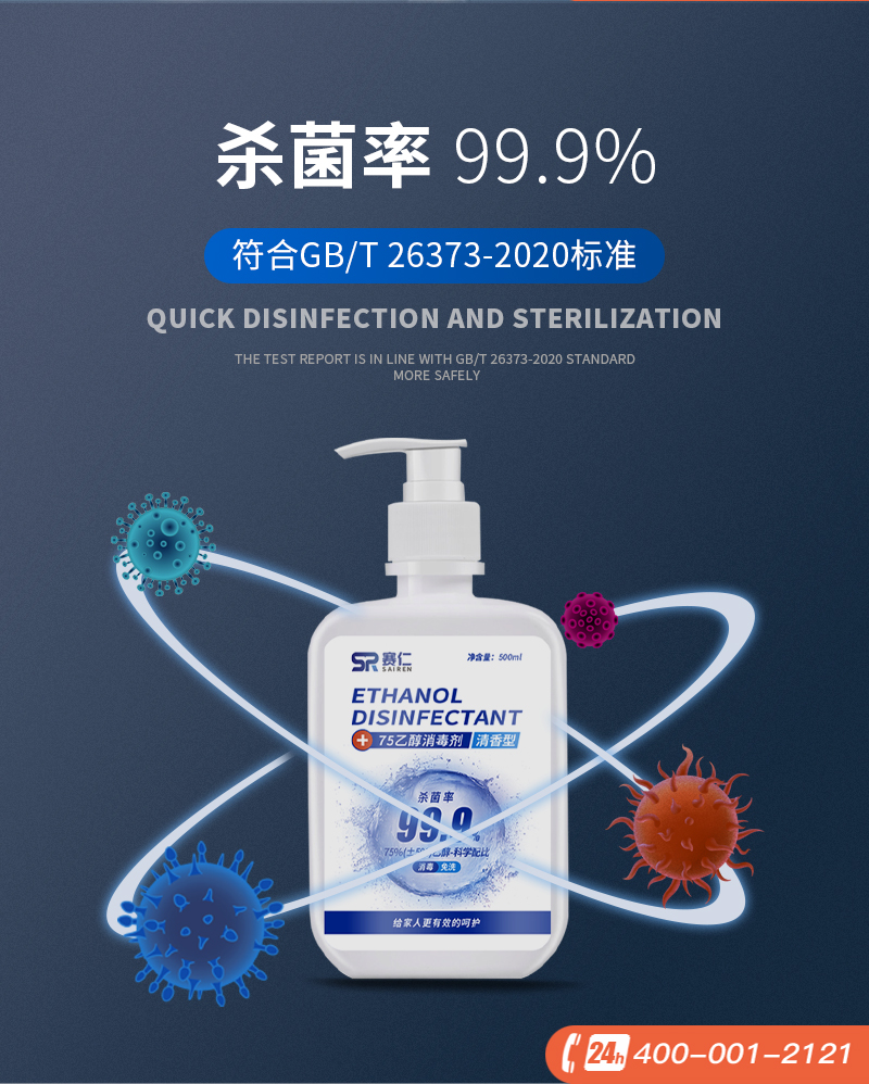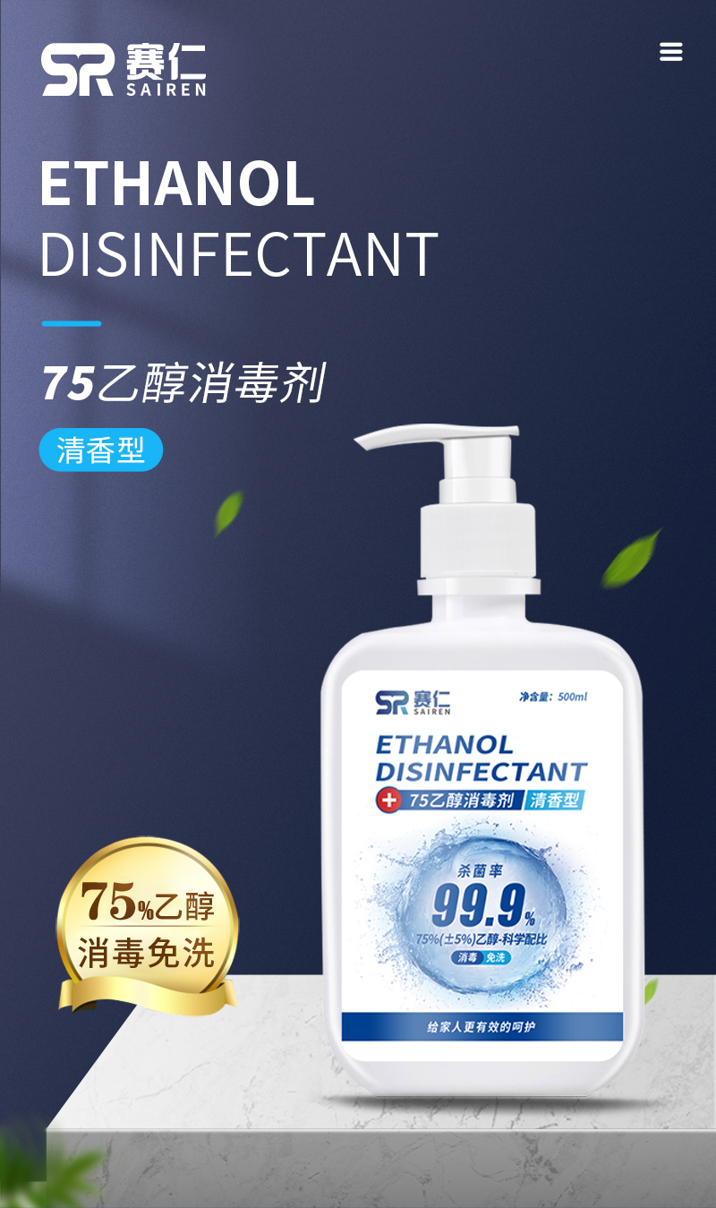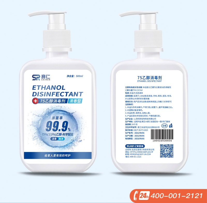 赛仁 免洗75%乙醇消毒剂 500ml/瓶装