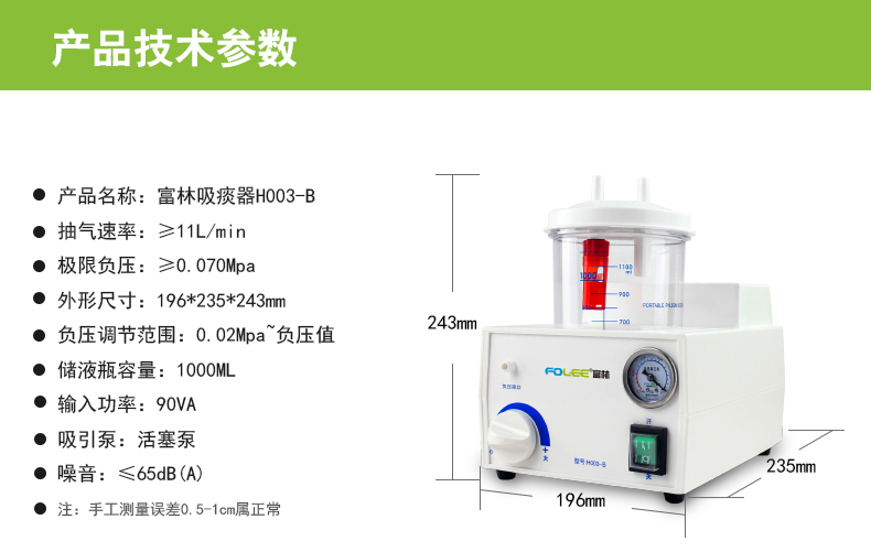 富林 电动吸痰器 H003-B 送20根F16粗吸痰管