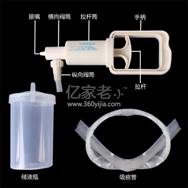 本产品由储液瓶、真空泵、吸痰管三部分组成。