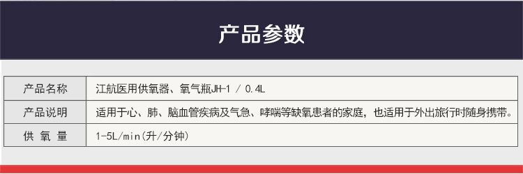 江航医用供氧器、氧气瓶JH-1 / 0.4L