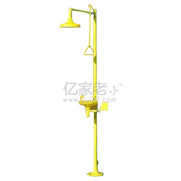 ·亮黄色ABS塑料材料洗眼器及喷头,水压可自动推开防尘罩,有优异的防化性能。