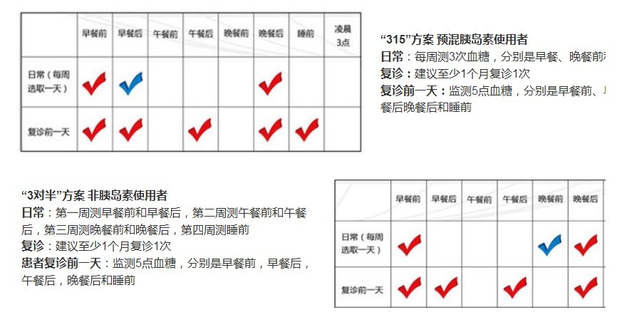 复诊前一天:监测5点血糖,分别是早餐前、早餐后、午餐后晚餐后和睡前