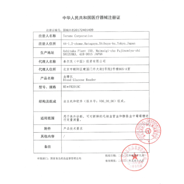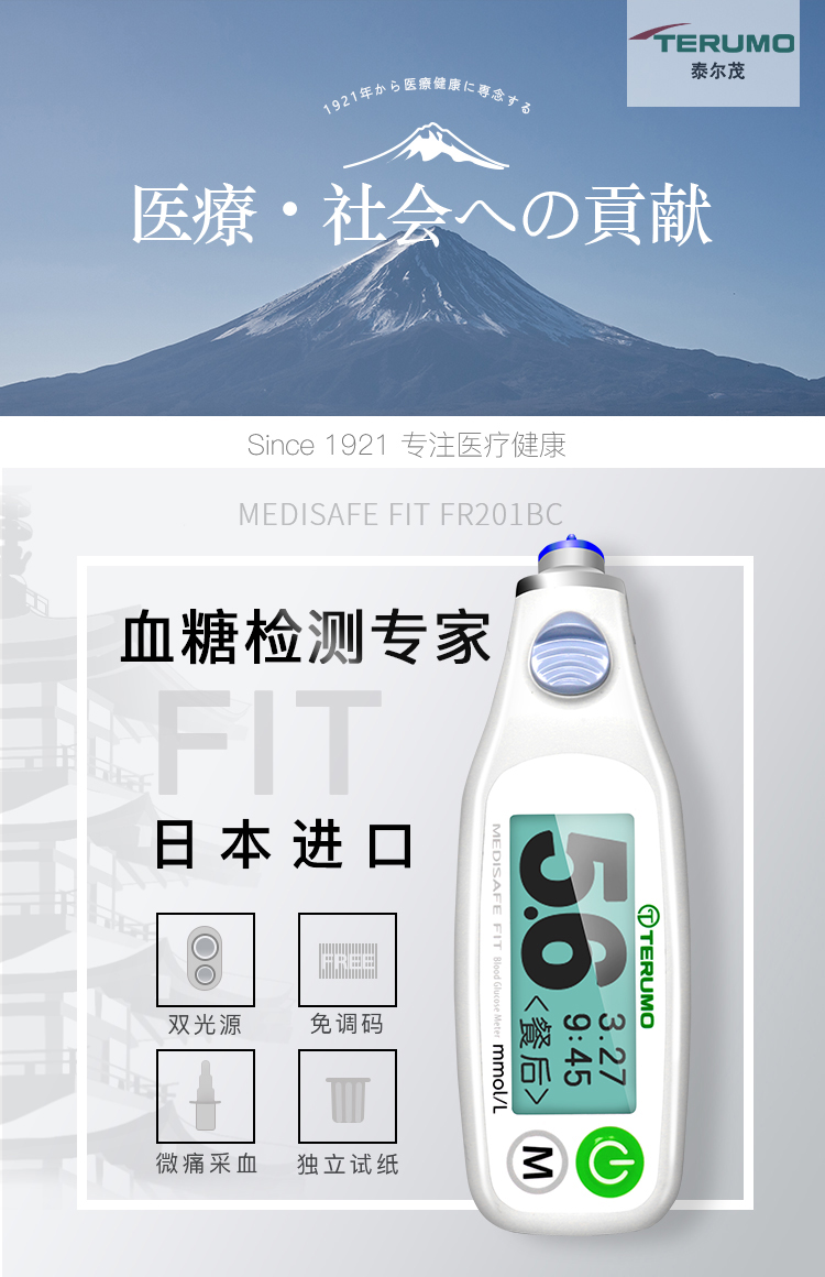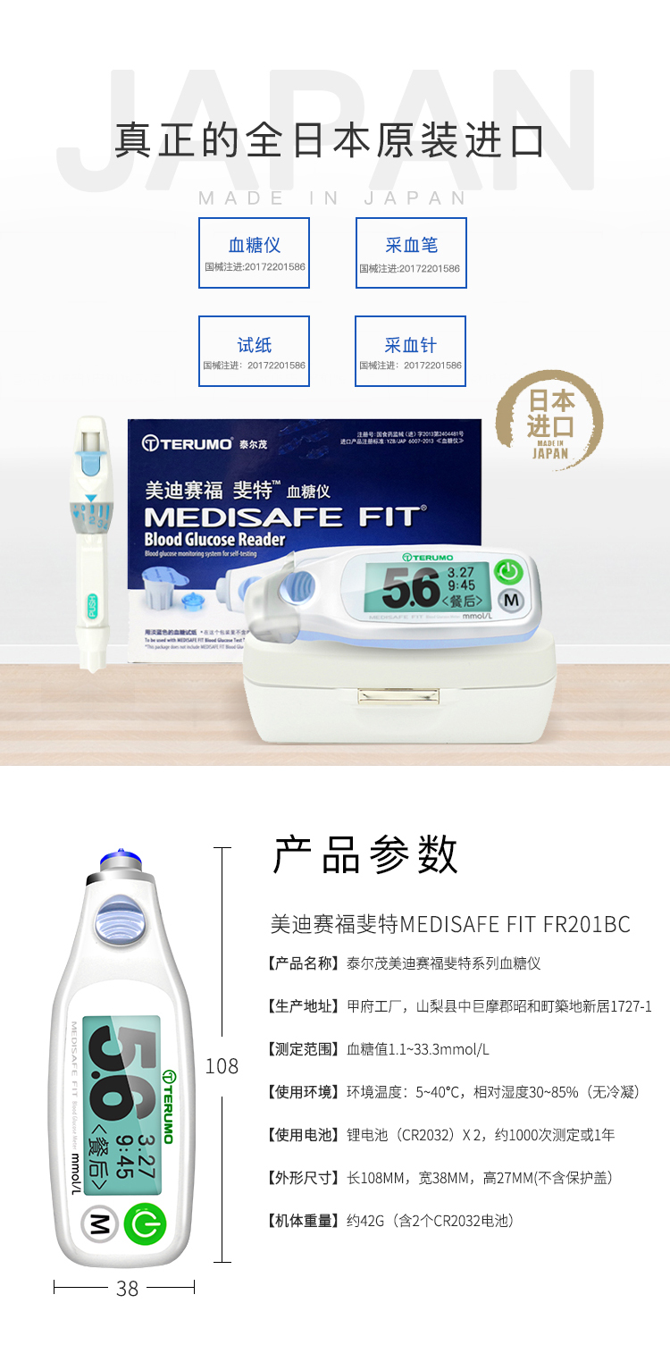 泰尔茂(日本进口) 血糖仪 美迪赛福斐特FR201BC (内附60片试纸+60采血针)