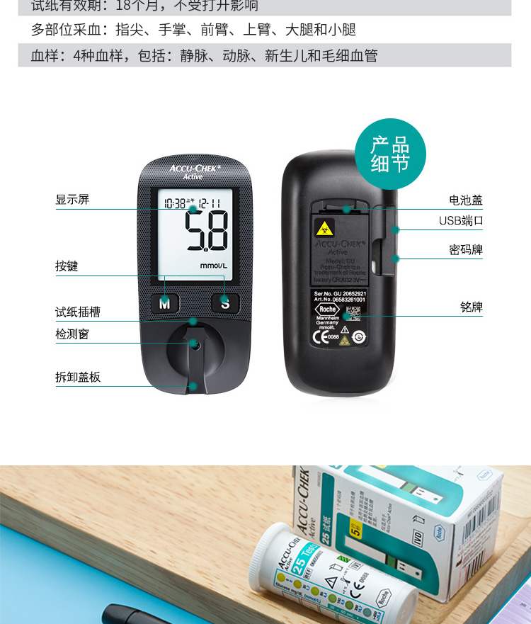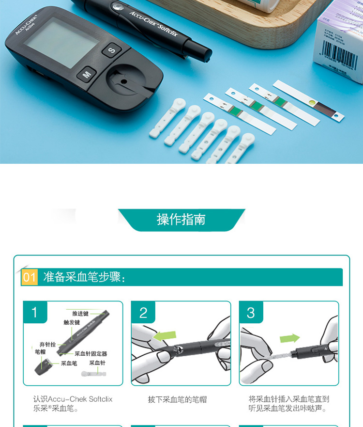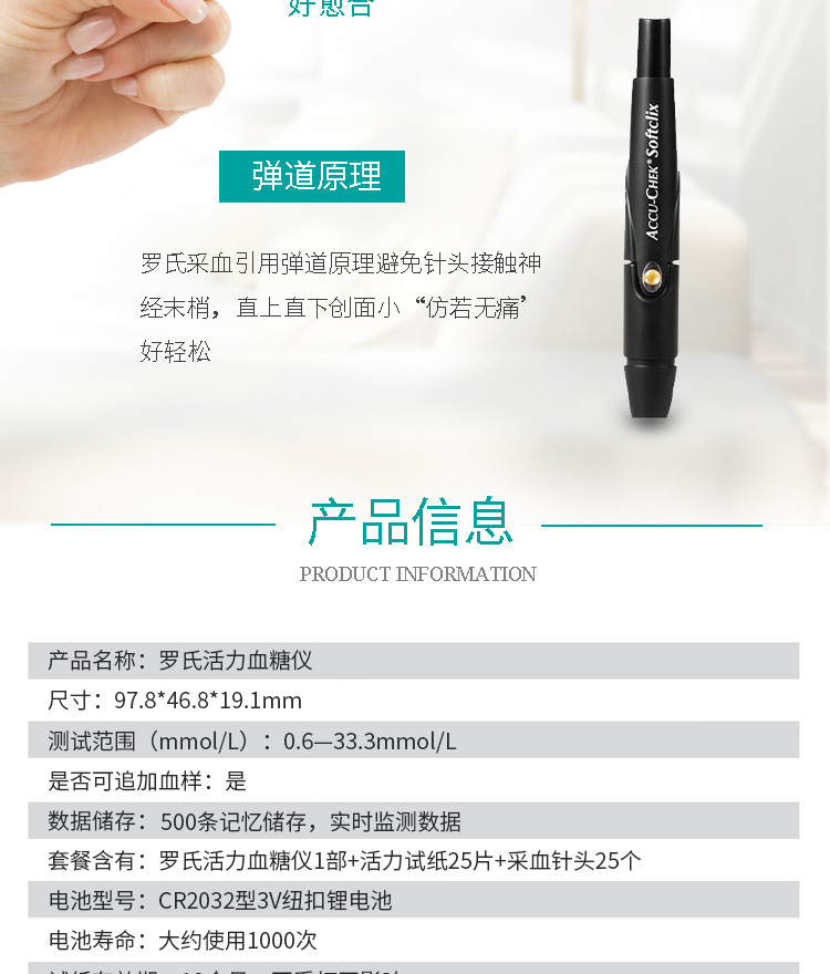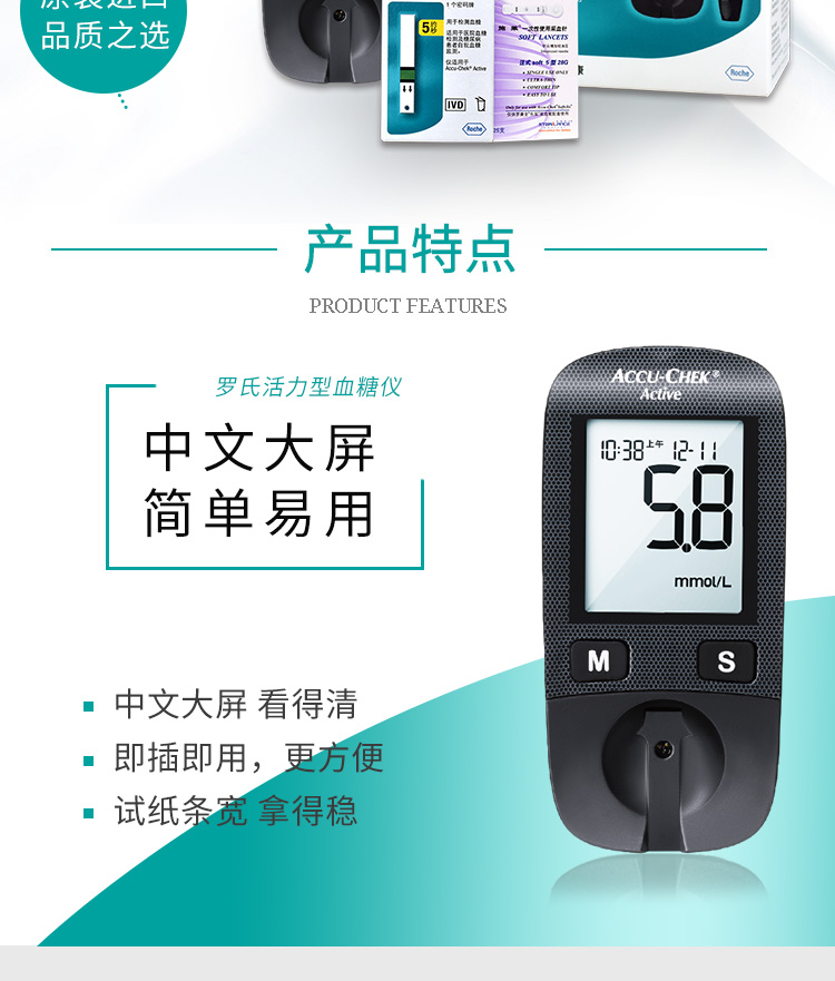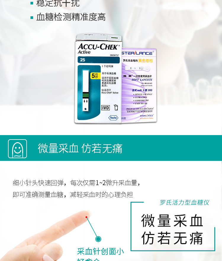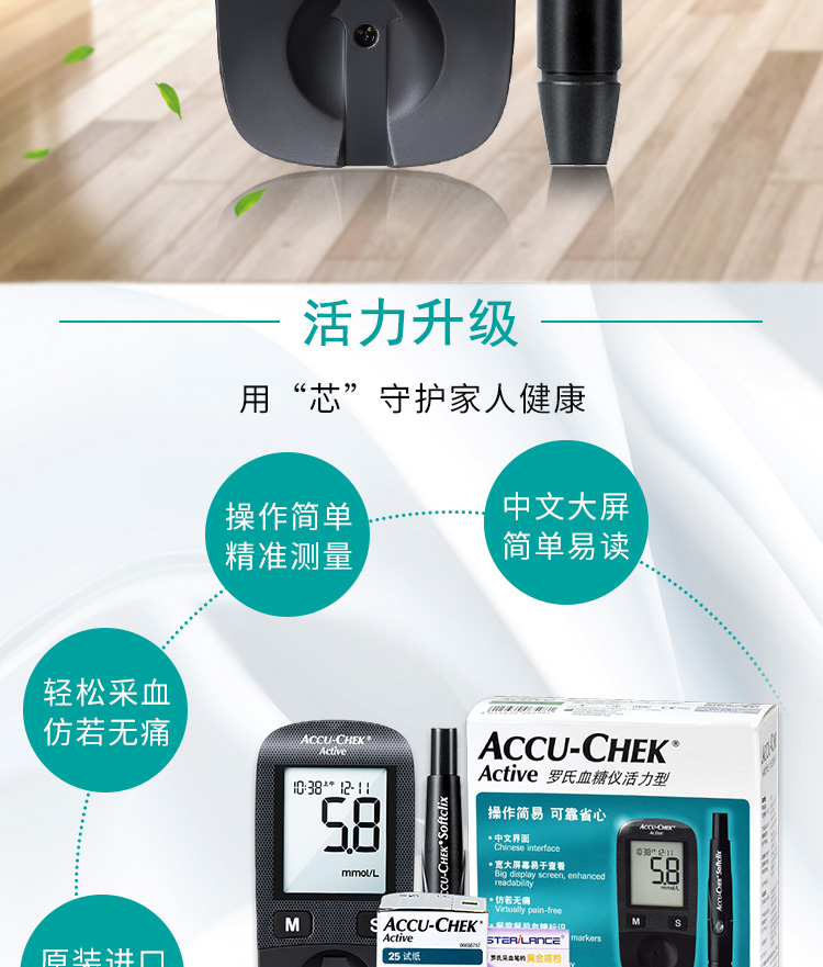 罗氏 家用血糖仪 活力型(内附25片试纸+25支采血针)