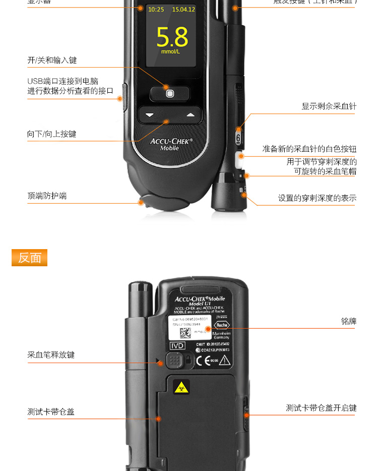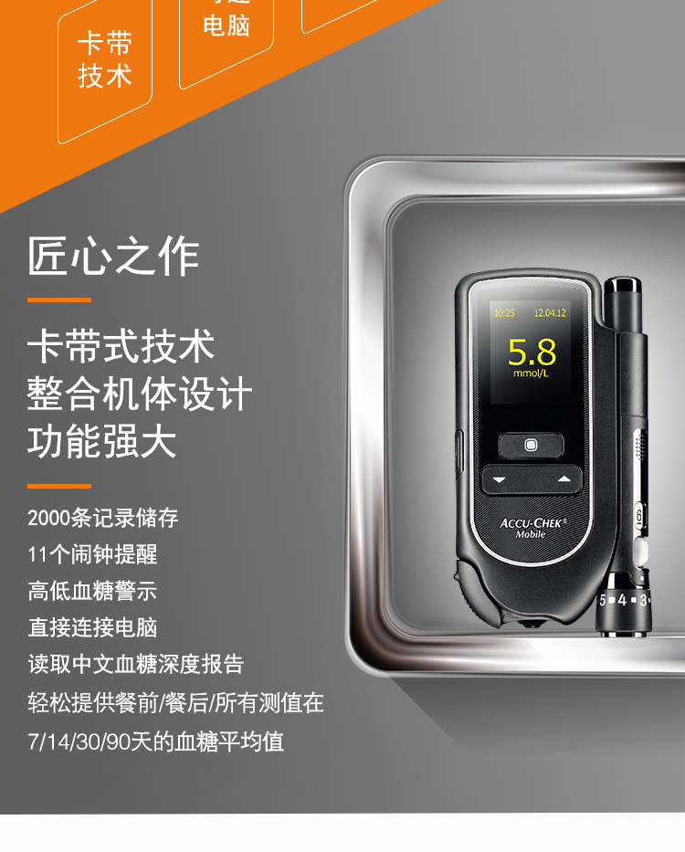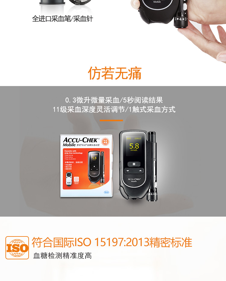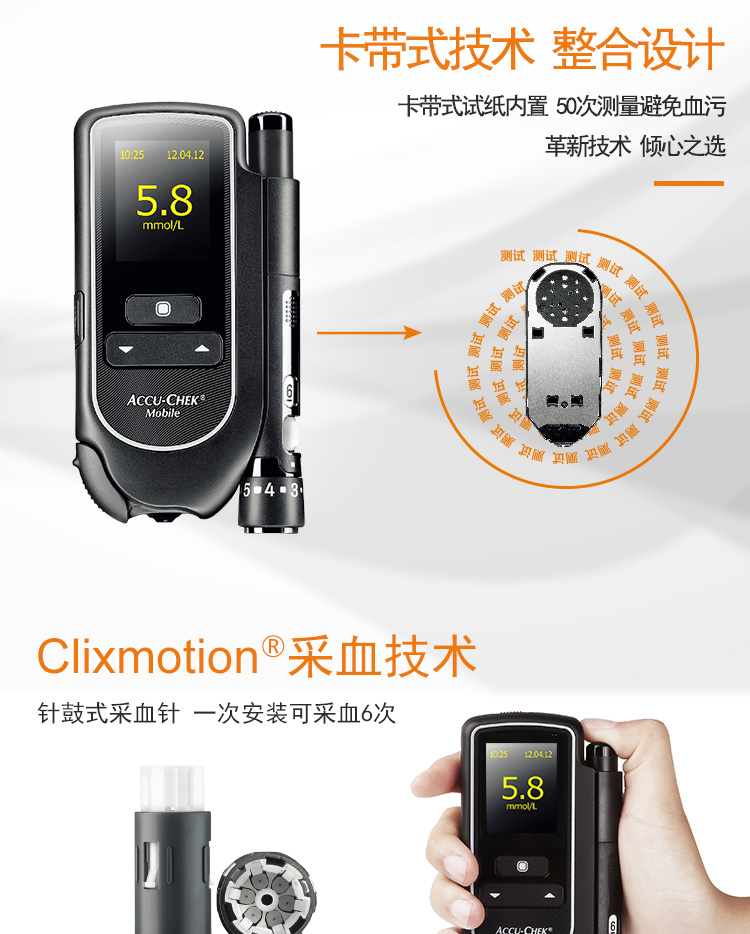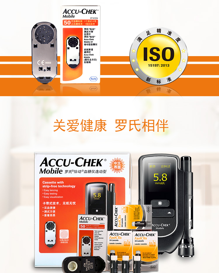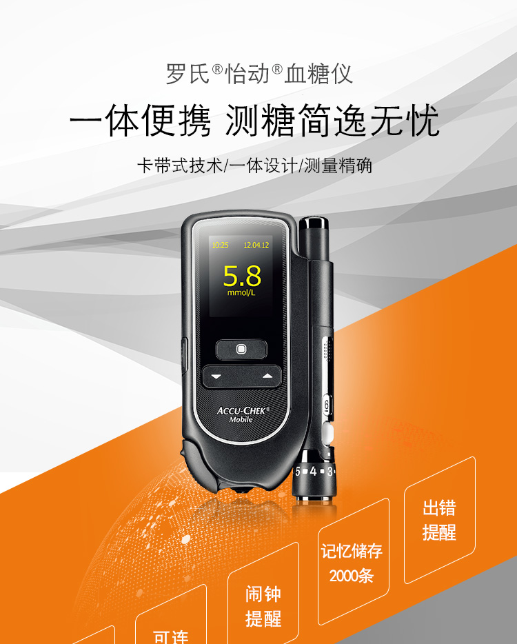 罗氏 血糖仪 逸动型套装(内附50片试纸+50支采血针)