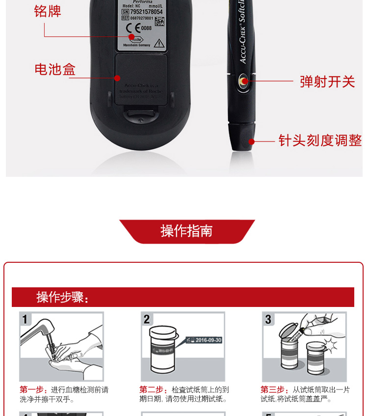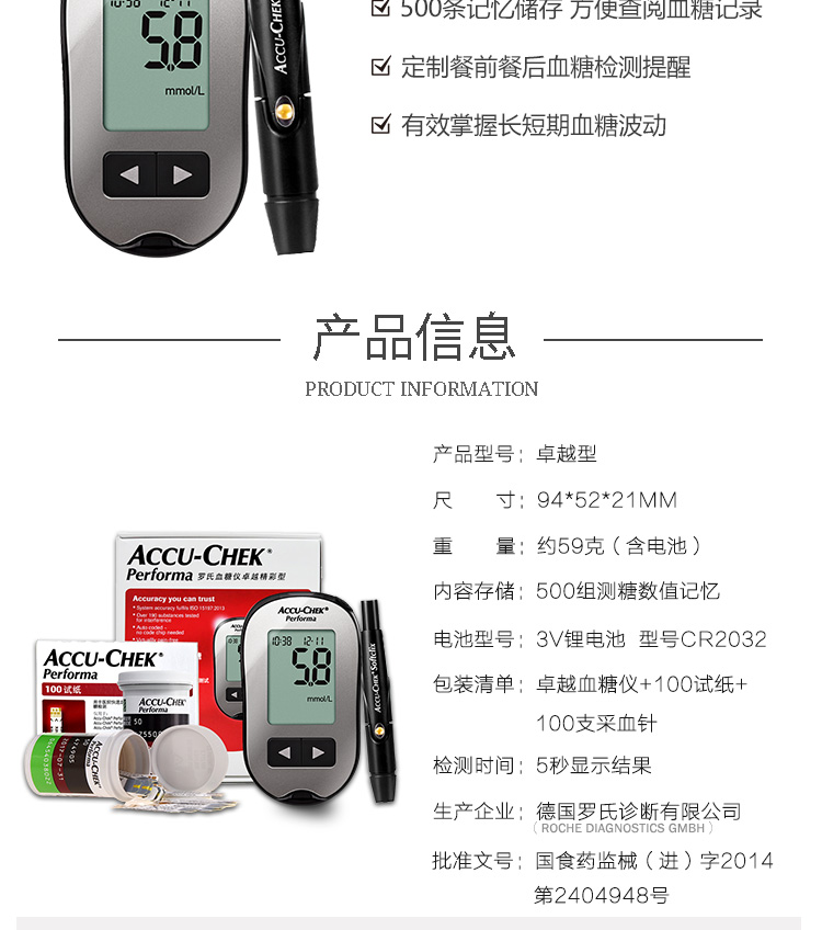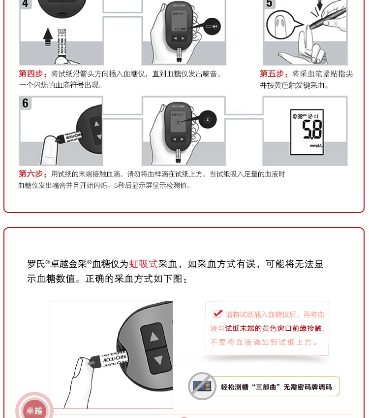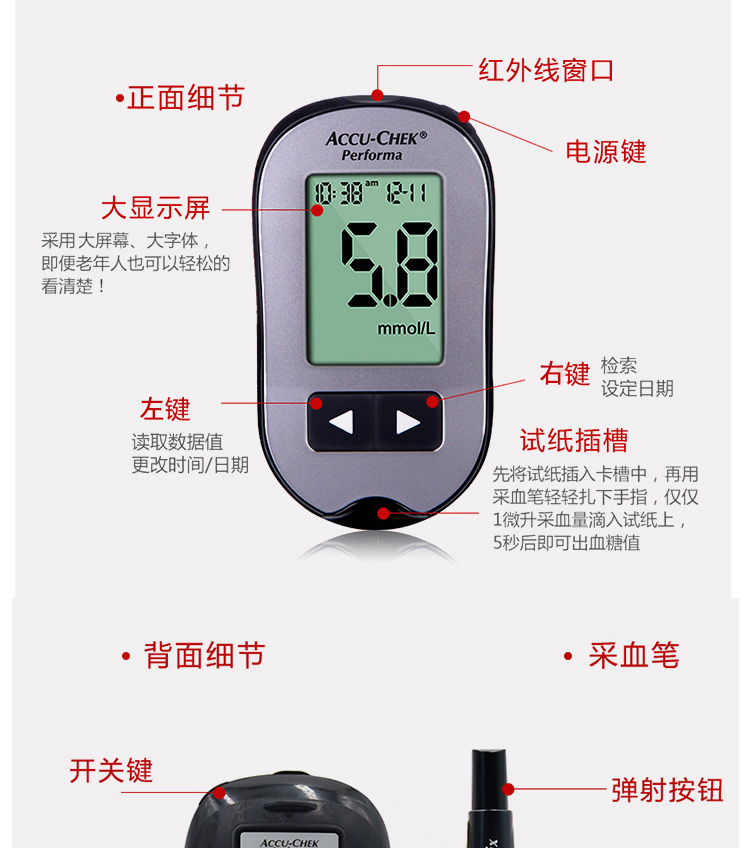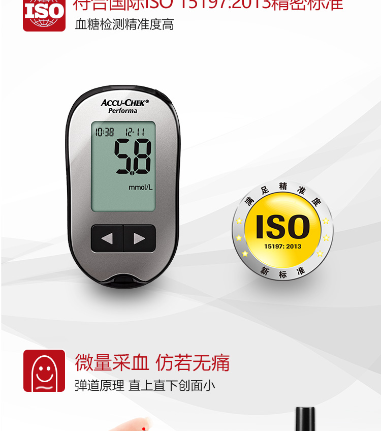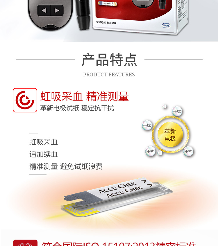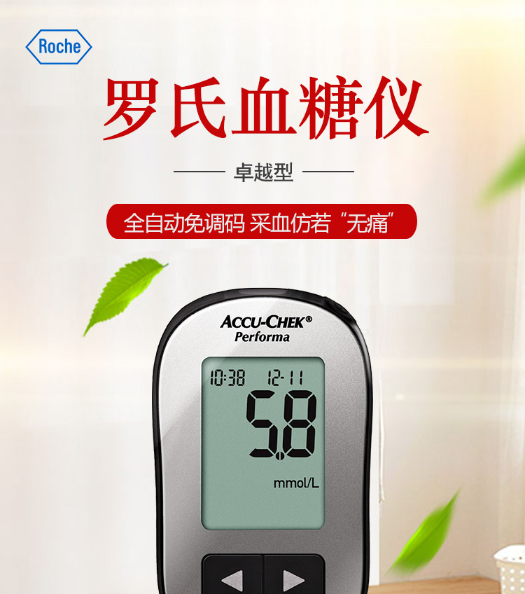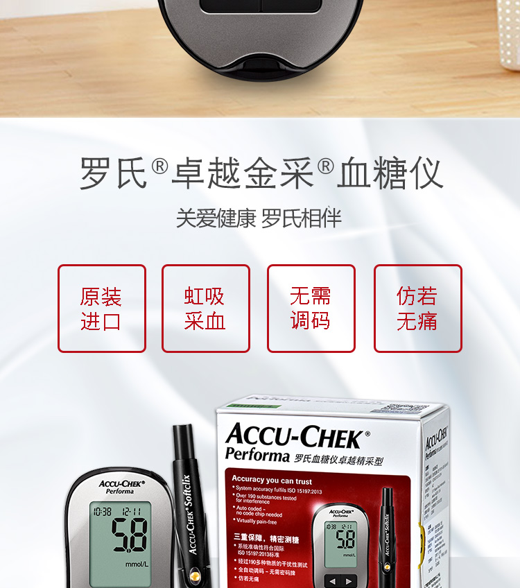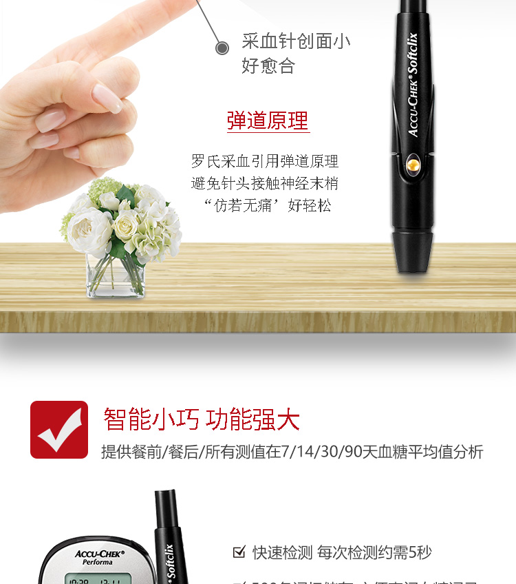 罗氏 血糖仪(卓越精采型)免调码 内附100片试纸+100支采血针