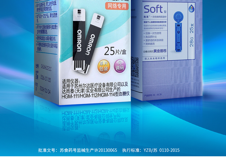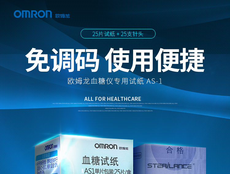欧姆龙 血糖试纸AS1(25条试纸+25支采血针)适用于HGM-111/112/114型血糖仪