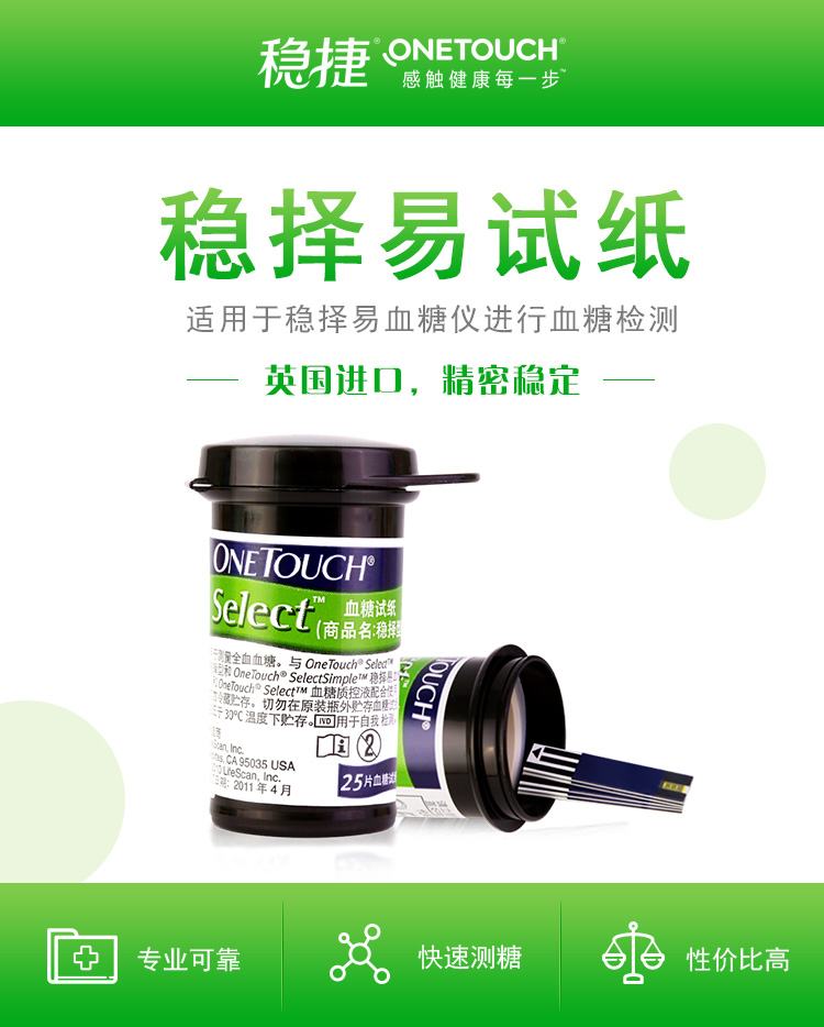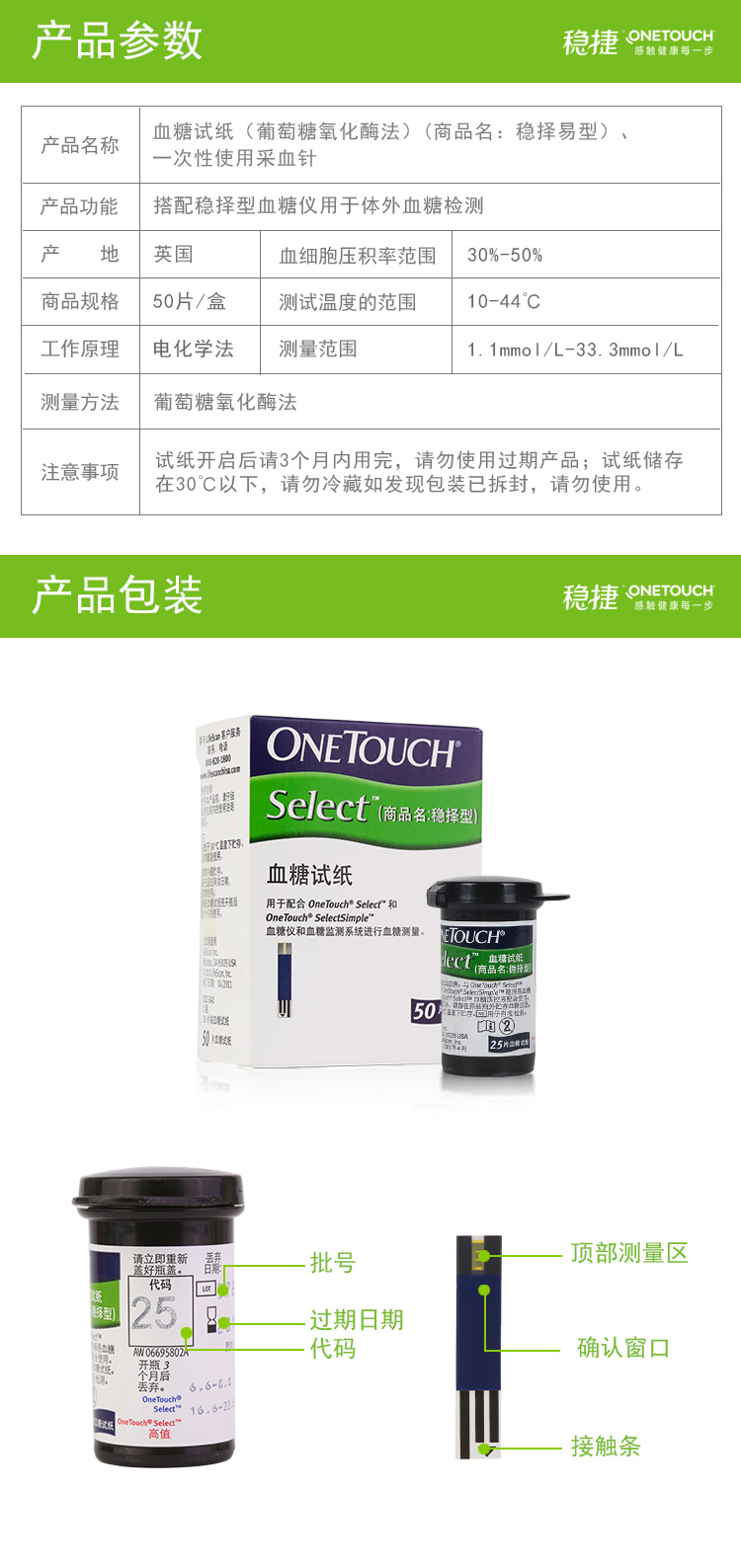 强生 稳捷血糖试纸50片 稳择易型 适用于稳择易型血糖仪