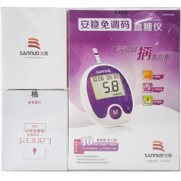 三诺 血糖仪 安稳免调码套装(含50支独立试条和针)