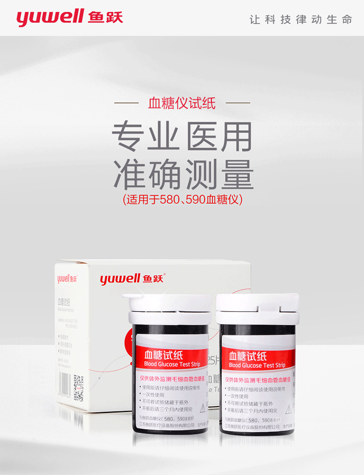 鱼跃 血糖试纸(100片试纸+100采血针) 适用于580/590型血糖仪