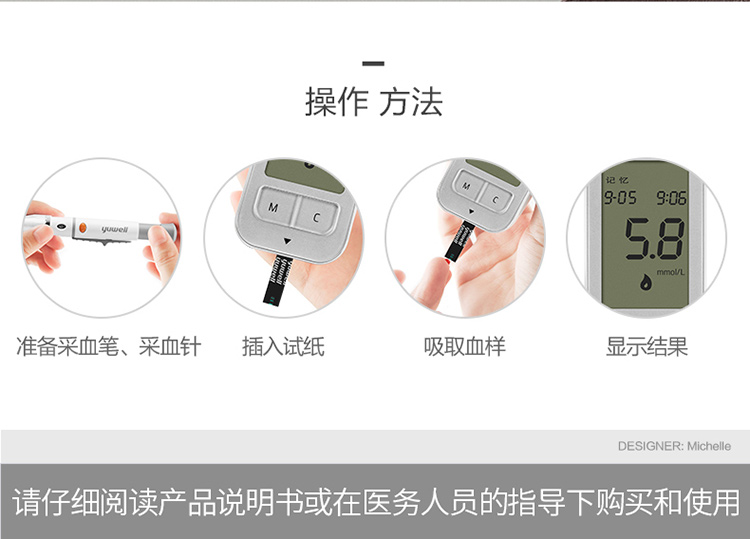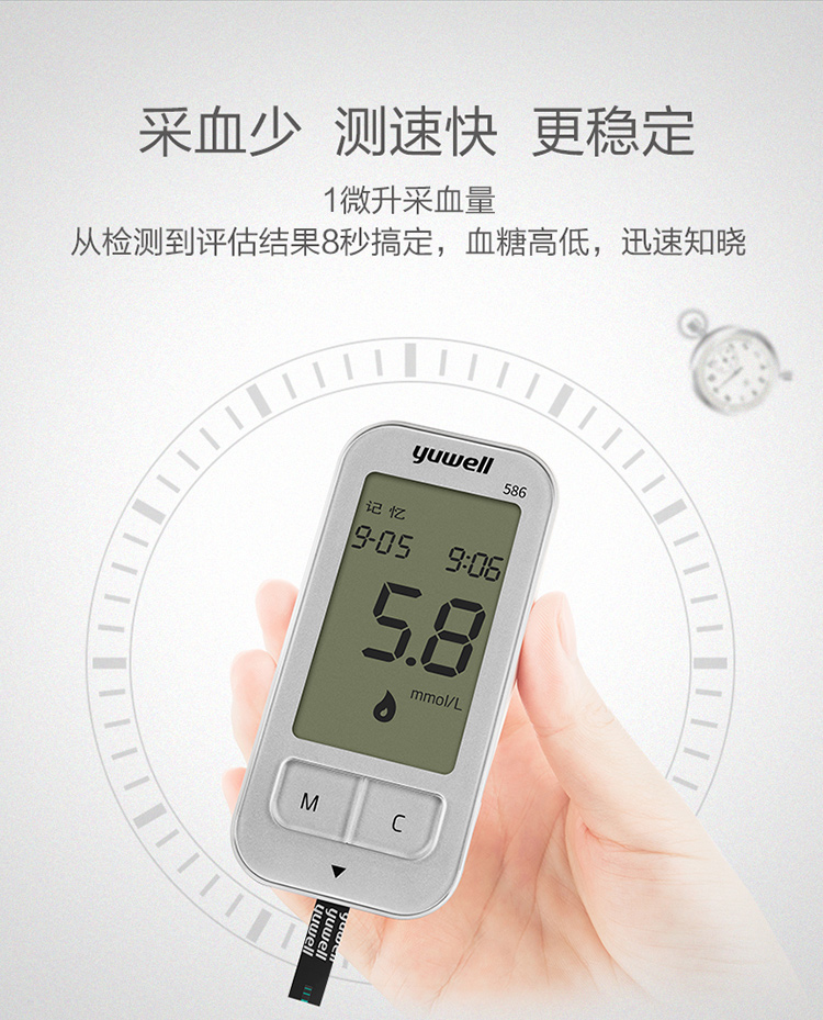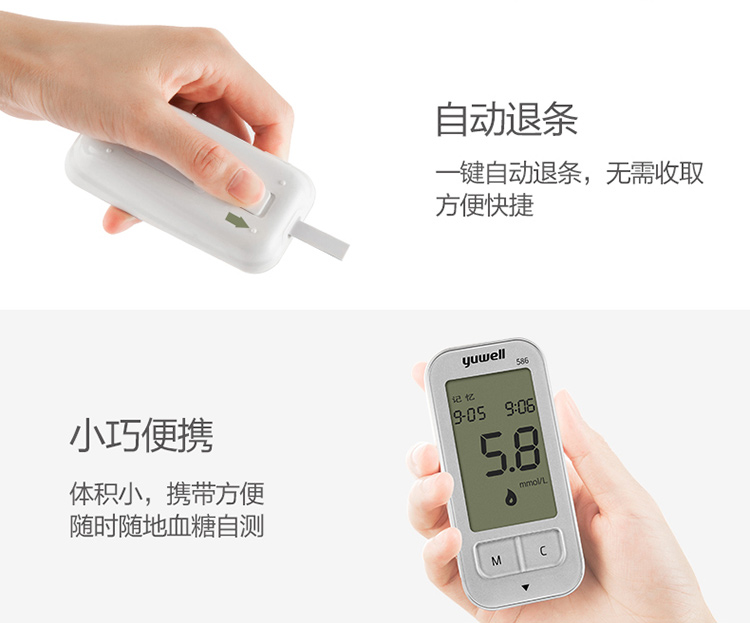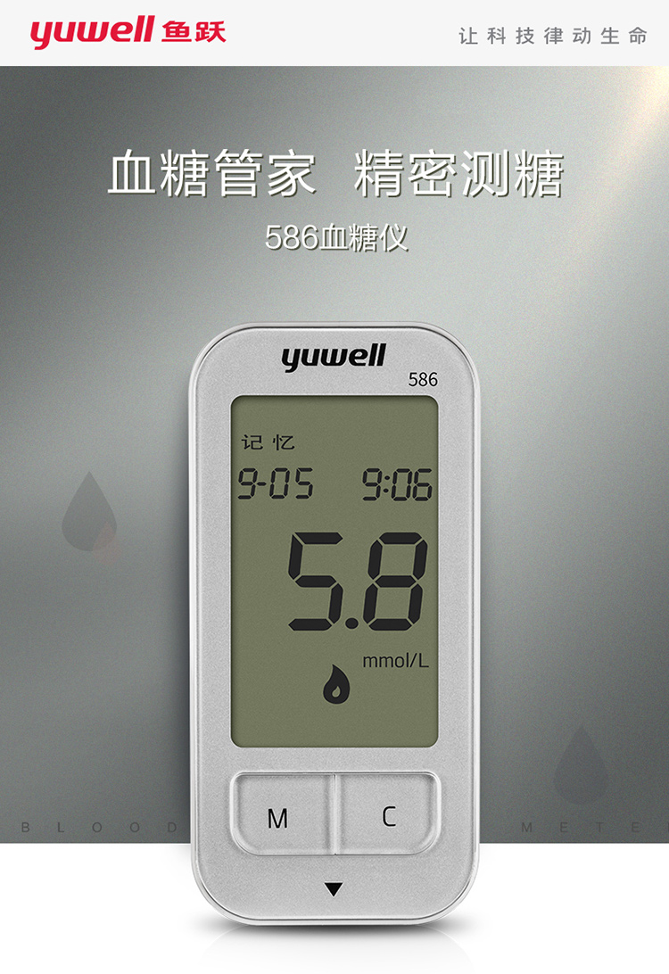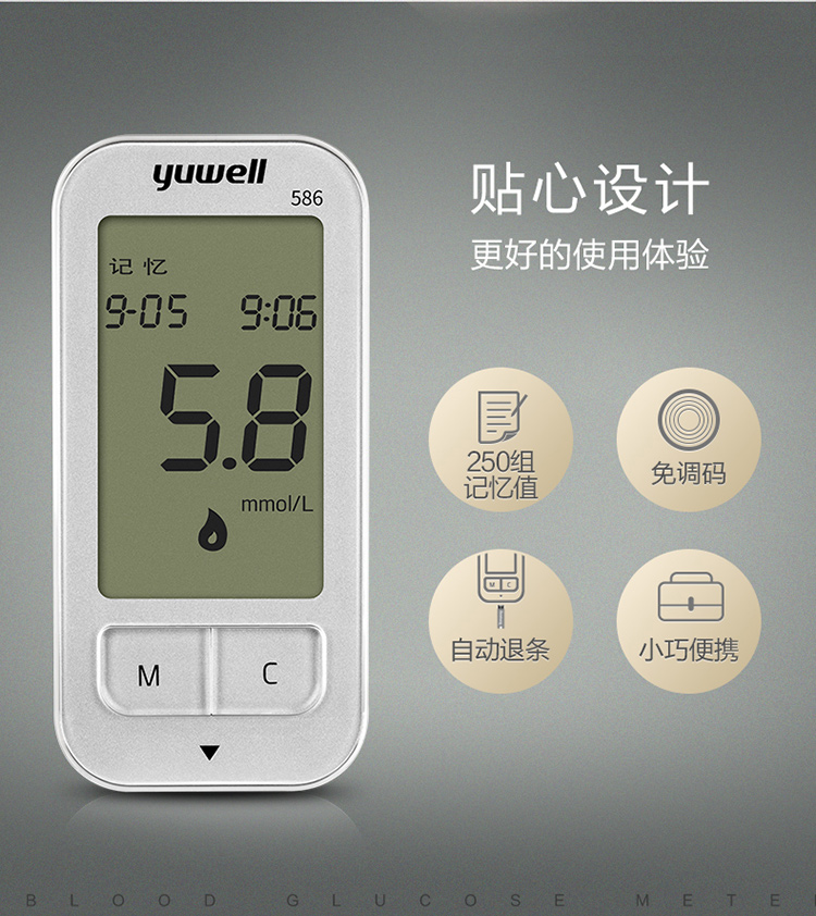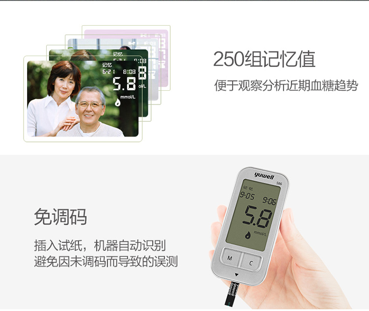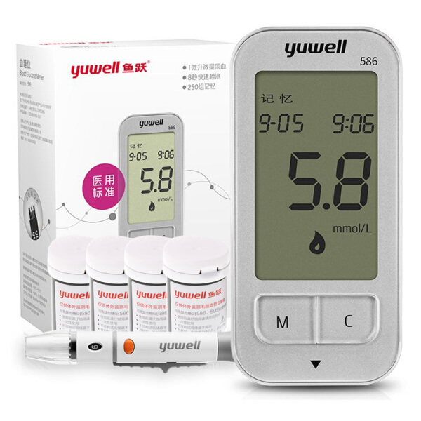 鱼跃 血糖仪586型套装(含100片试纸/采血针)智能免调码