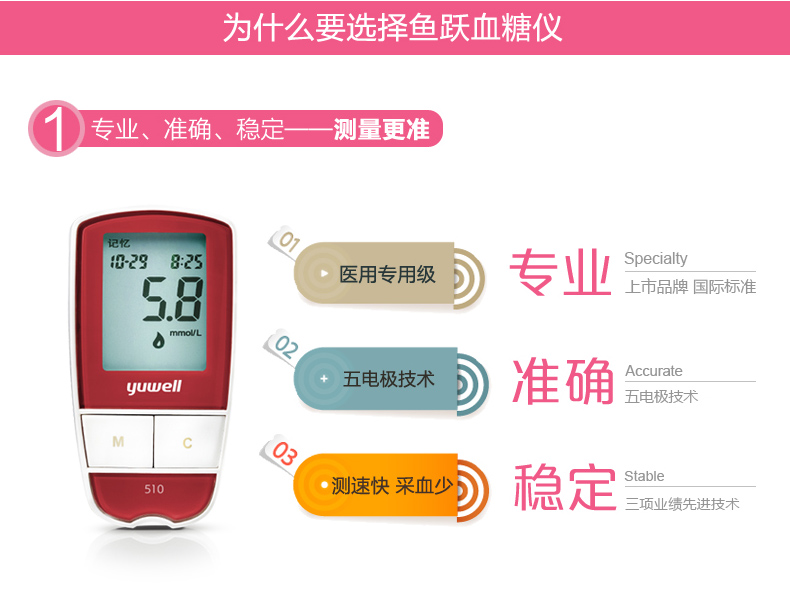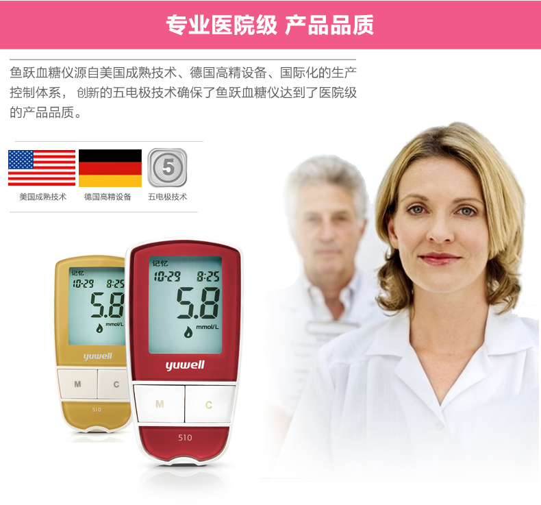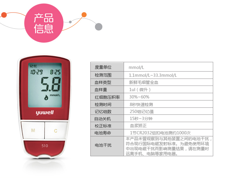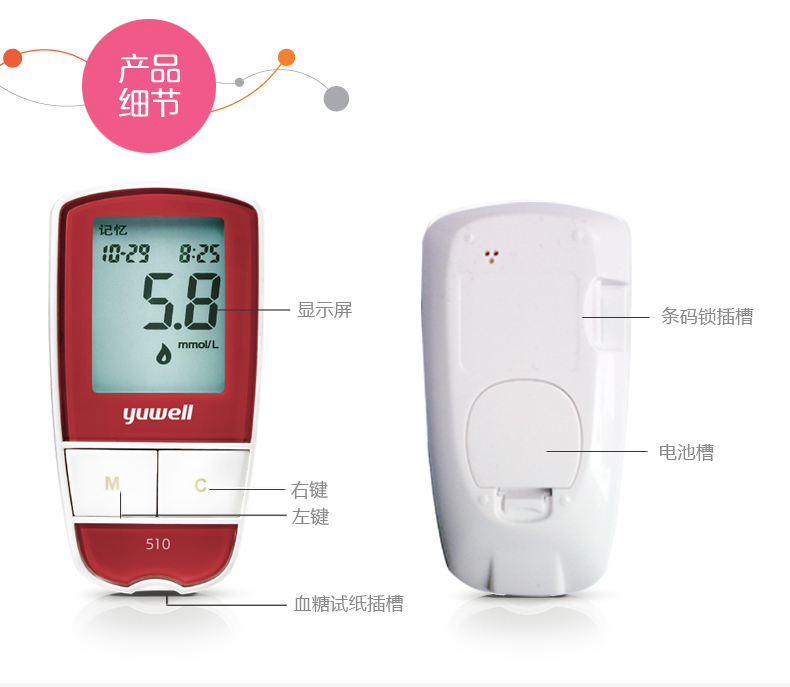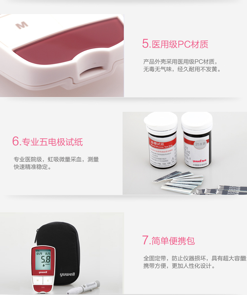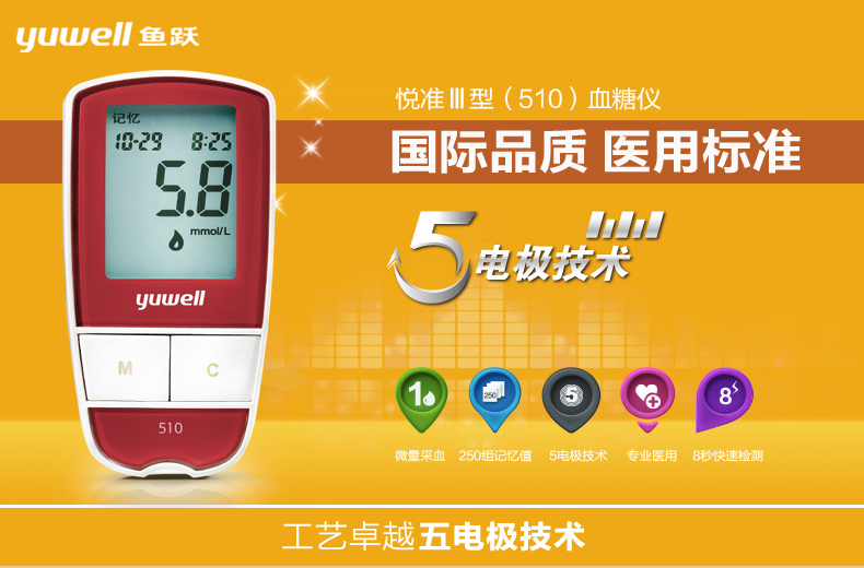 鱼跃血糖仪-510悦准Ⅲ型 -全自动血糖仪血糖计(含50片试纸 50采血针)
