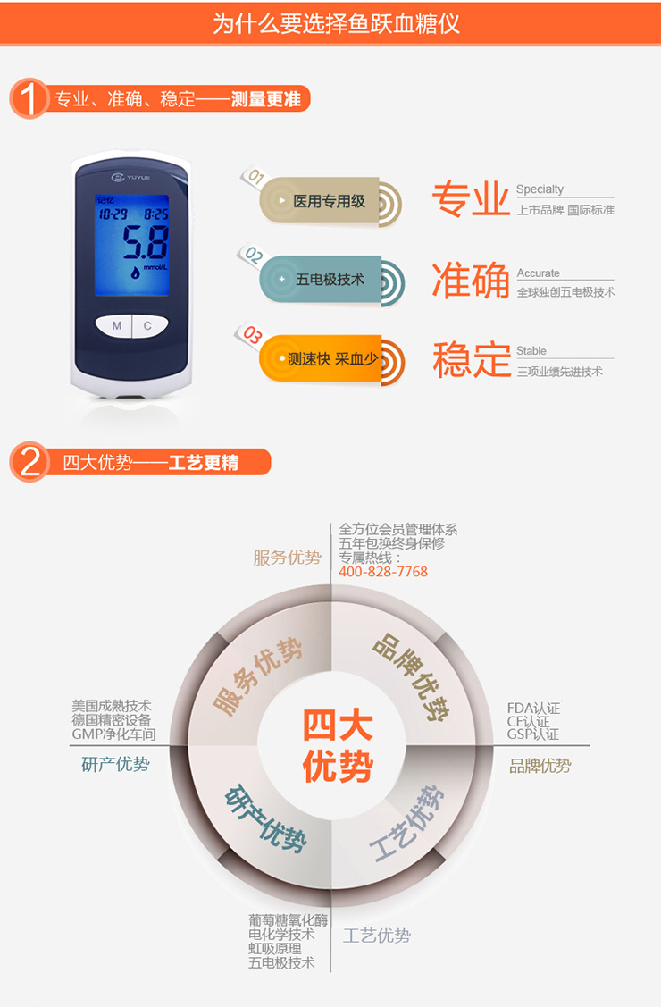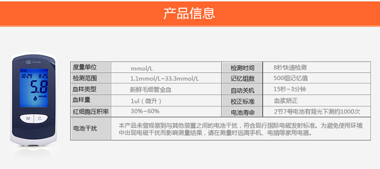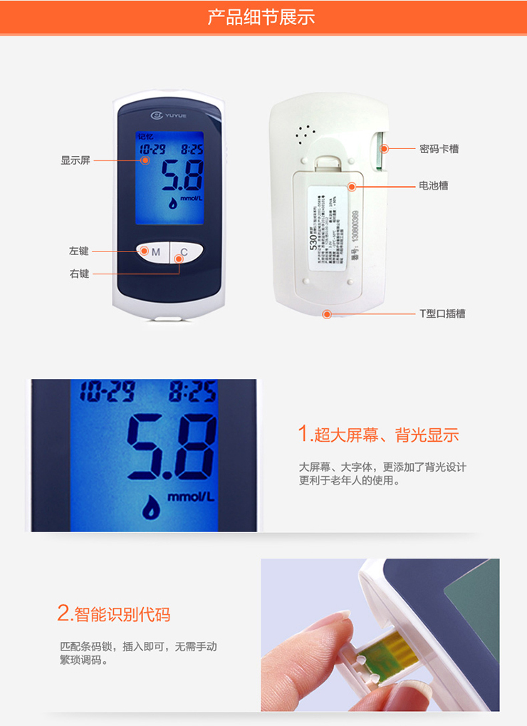 鱼跃血糖仪-悦好530IV型-全自动血糖仪血糖计(含50片试纸)