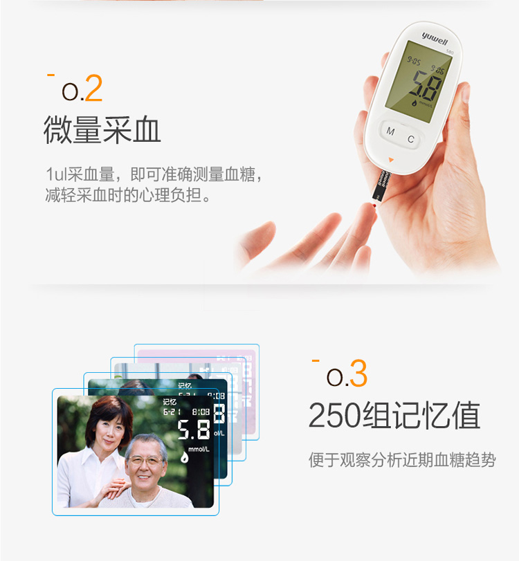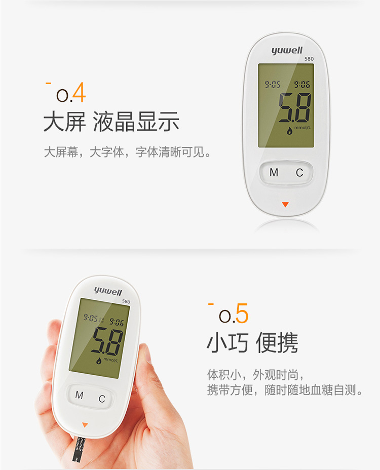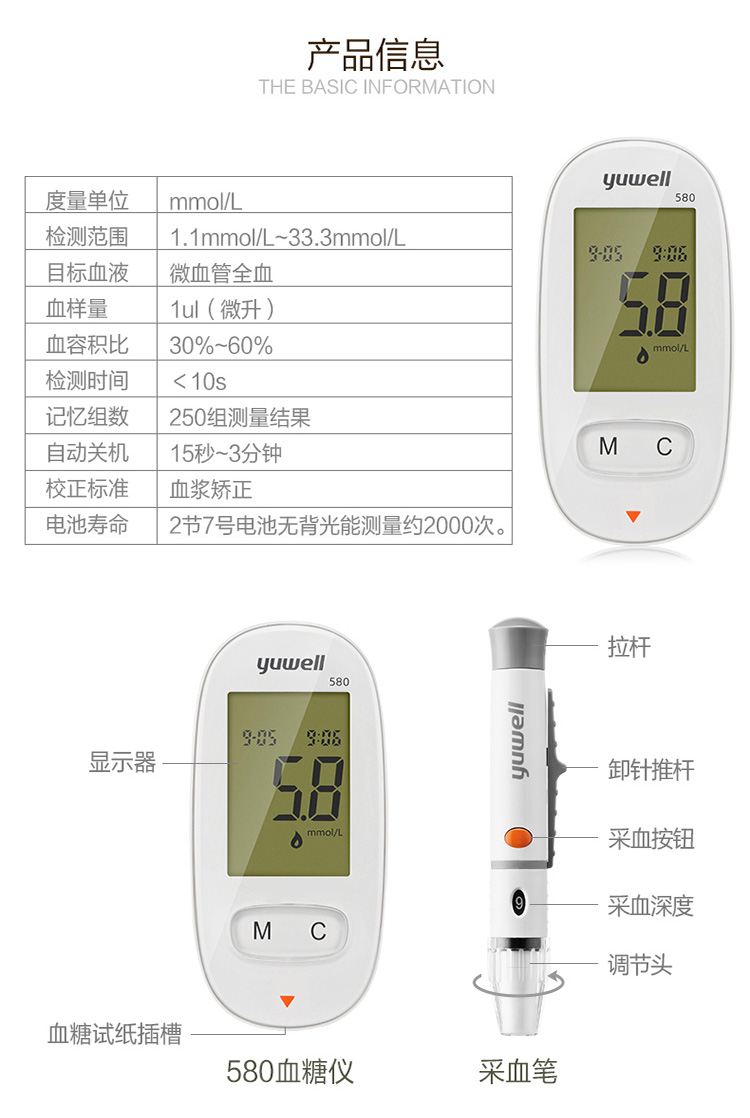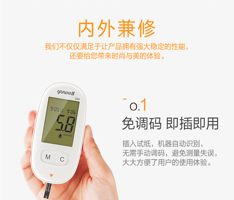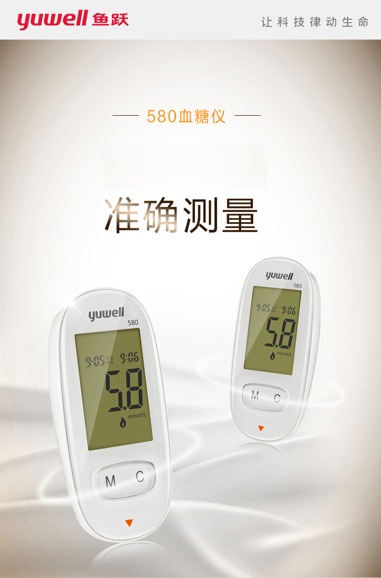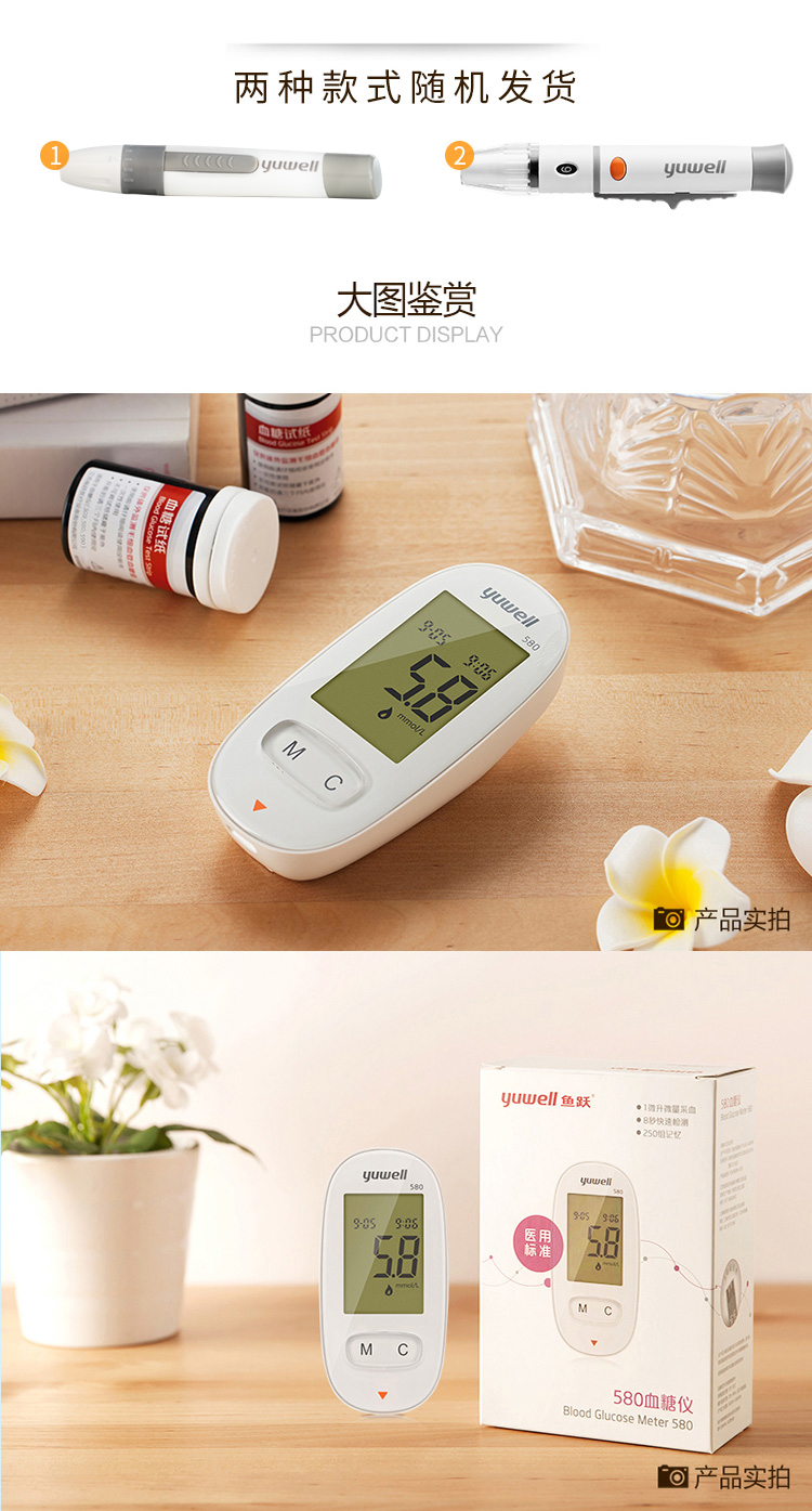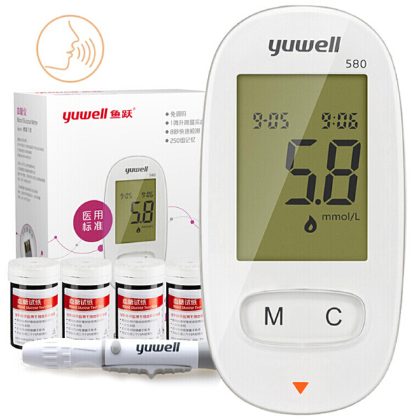 鱼跃 血糖仪(580型)套装 智能免调码 含100片试纸/采血针