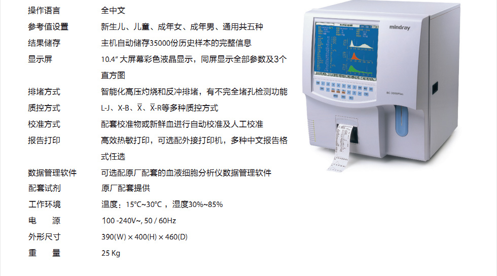 迈瑞Mindray全自动三分群血液细胞分析仪BC-3000 Plus