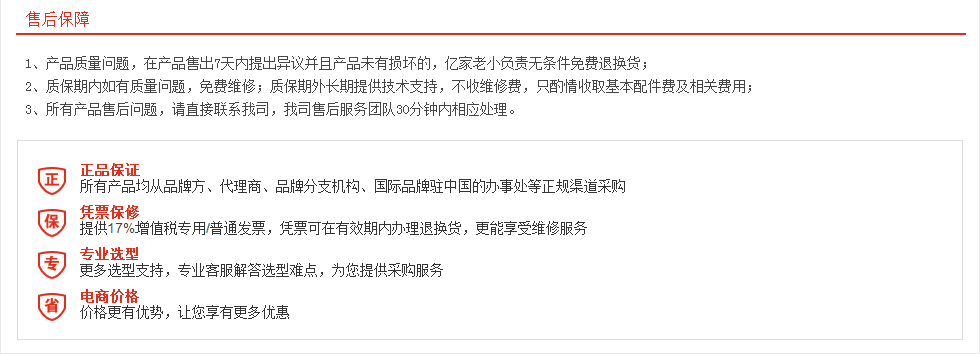 注: 产品质量问题,在产品售出7天内提出异议并且产品未有损坏的,亿家老小负责无条件免费退换货;质保期内如有质量问题,免费维修;质保期外长期提供技术支 持,不收维修费,只酌情收取基本配件费及相关费用;所有产品售后问题,请直接联系我司(7x24小时热线:400-027-9875),我司售后服务团队 30分钟内相应处理。