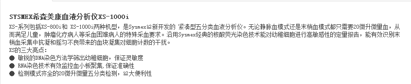 SYSMEX希森美康血液分析仪XS-1000i