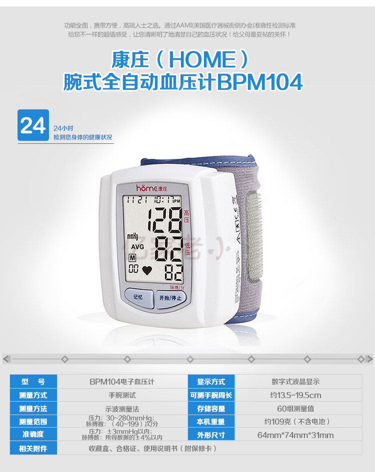 康庄电子血压计BPM104-腕式家用全自动血压仪器仪表