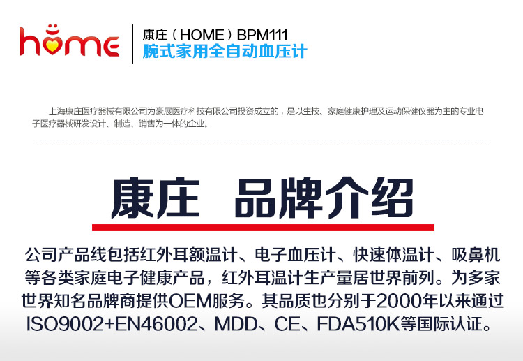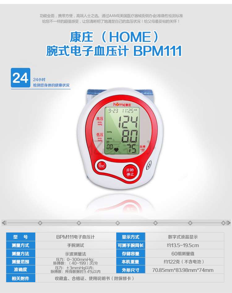【商品名称】:康庄BPM111电子血压计