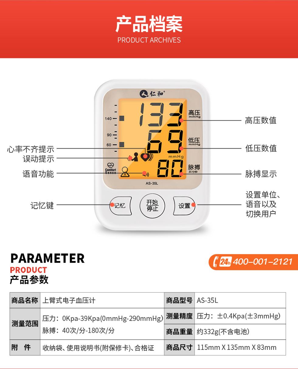 仁和 血压计(上臂式)AS-35L